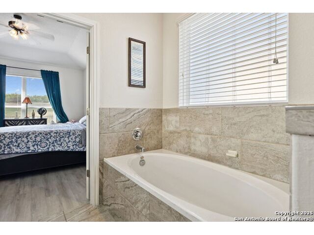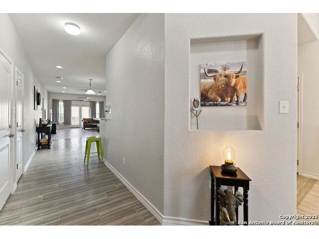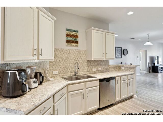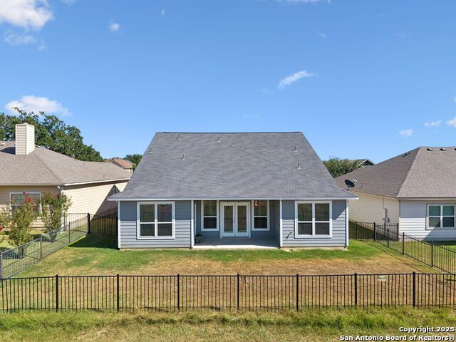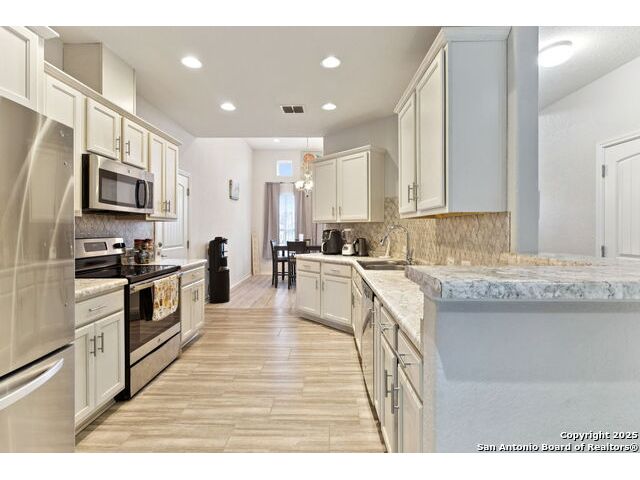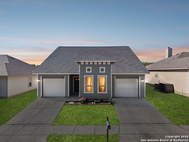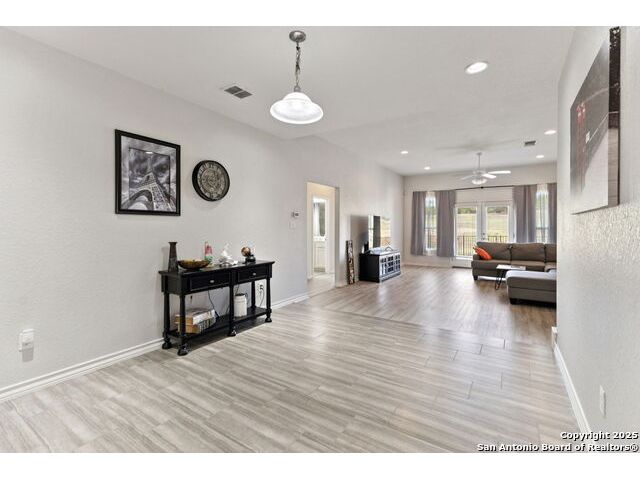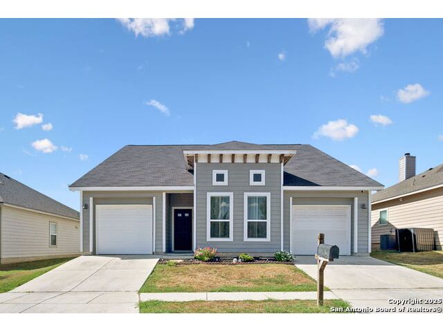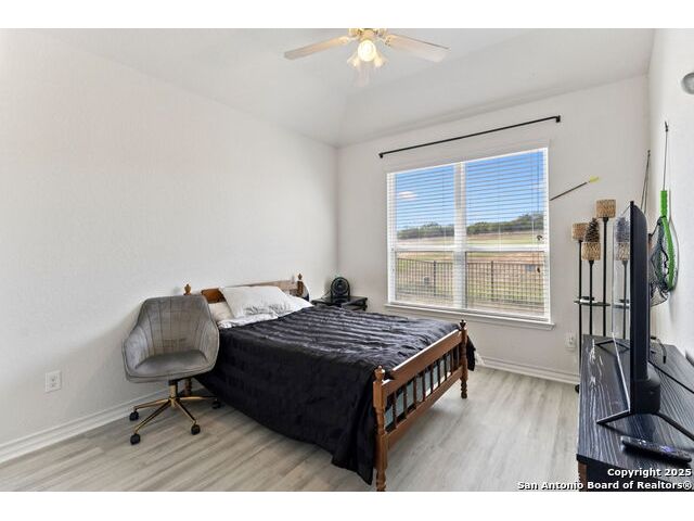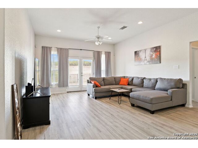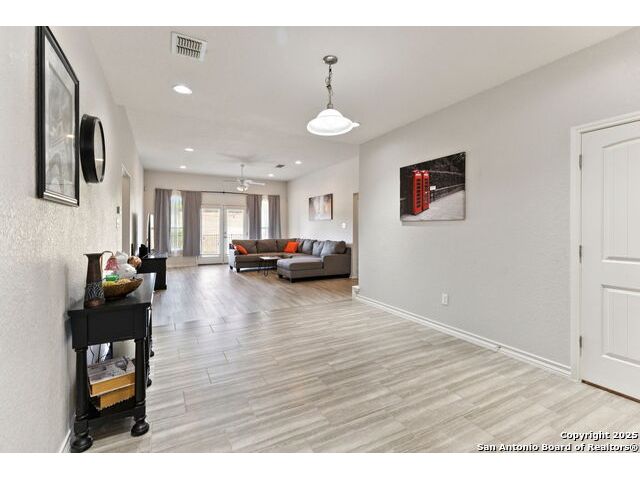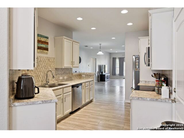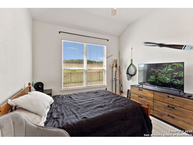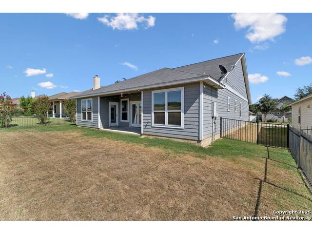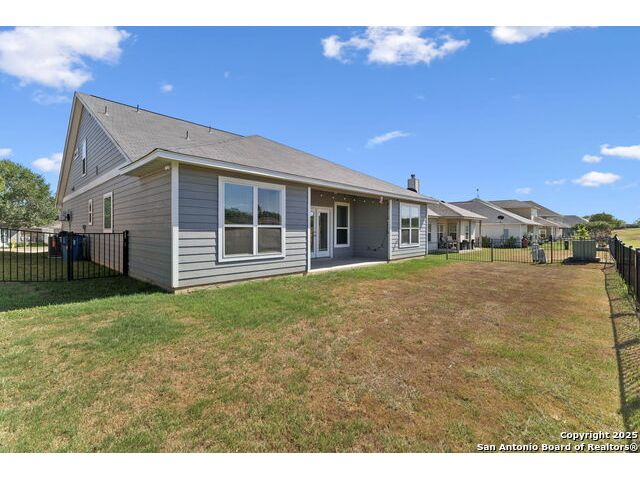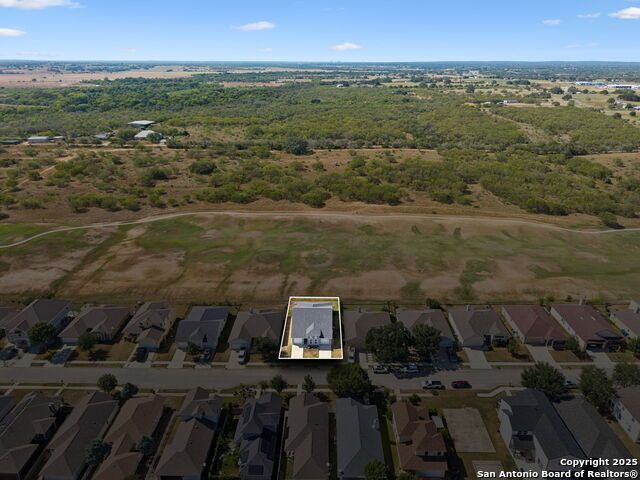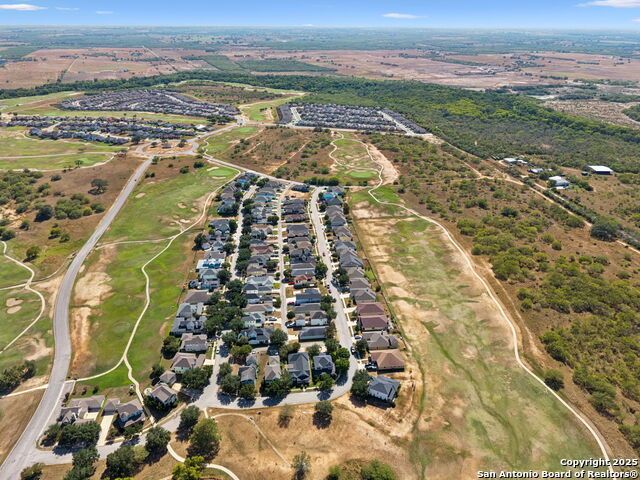 Welcome to this beautiful 4-bedroom, 3-bathroom home in the highly sought-after River Bend community, offering stunning views of the 6th tee on the championship golf course. This thoughtfully designed home features an open-concept living area filled with natural light, seamlessly connecting the living room, breakfast nook, and stylish kitchen, which includes cream-colored cabinetry, recessed lighting, and ample storage. The main level offers three spacious bedrooms, including a comfortable primary suite, while the upstairs includes a fourth bedroom and full bath, perfect for guests, a private retreat, or a flexible living space. A formal dining room at the front of the home adds versatility and can easily function as a study or second living area. Outside your door, the River Bend community provides an exceptional lifestyle with top-tier amenities such as an 18-hole championship golf course, tennis courts, disc golf, and dining at Lew's Patio & Grill. Conveniently located just 20 minutes from San Antonio, with HEB and Walmart nearby, this home offers the perfect balance of comfort, style, and convenience. Don't miss your chance to own this incredible home in one of the area's premier golf course communities. Schedule your showing today!