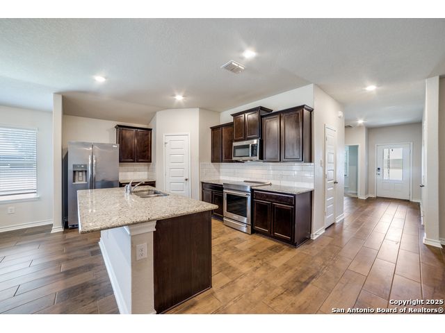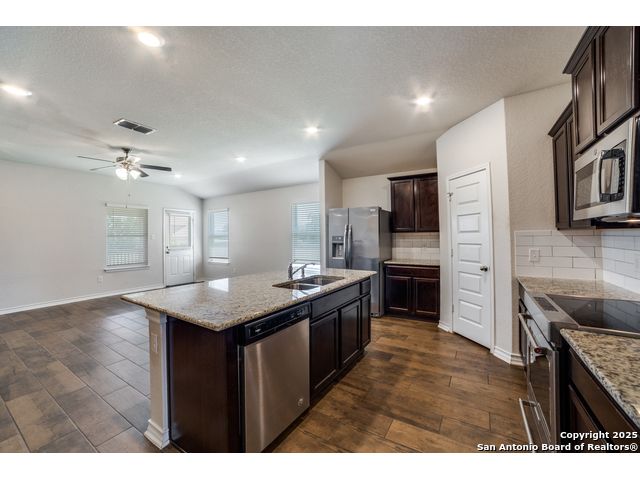 Welcome to this beautiful 4 bedroom, 3 bathroom single-story home located in the desirable Bandera River Ranch subdivision. Built in 2022 by D.R. Horton, this home offers a modern open floor plan highlighted by ceramic wood-like tile throughout the main living areas and plush carpet in the bedrooms. Soaring high ceilings and abundant natural light create a warm and inviting atmosphere. A separate office with a closet provides the perfect space for working from home or could easily serve as an additional bedroom. The primary suite offers comfort and privacy, while the thoughtful layout ensures functionality for everyday living. Situated on 0.47 acres, there's plenty of outdoor space to enjoy. Bandera River Ranch provides access to a variety of neighborhood amenities, including a pool, playground, sport courts, and private access to the Medina River. This home blends modern design with the charm of the Hill Country lifestyle-making it a perfect retreat in a sought-after community. Schedule your showing today!