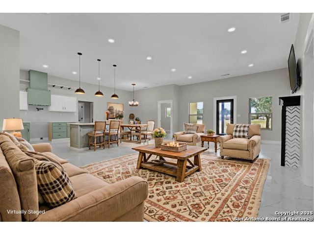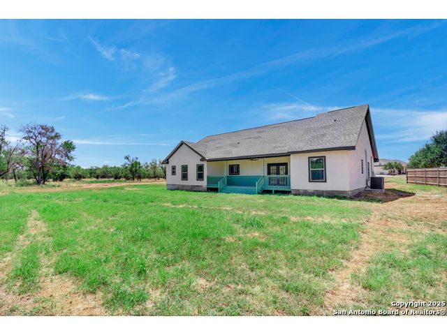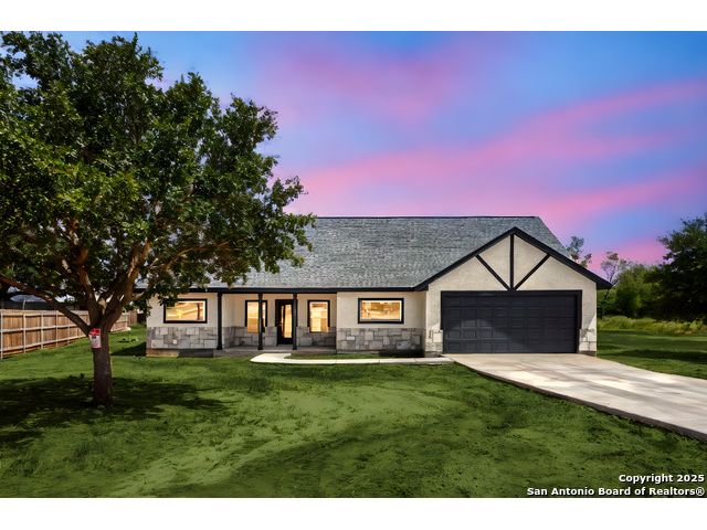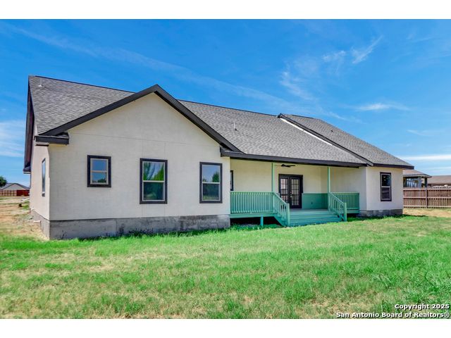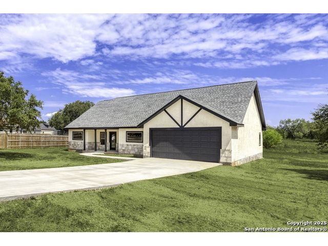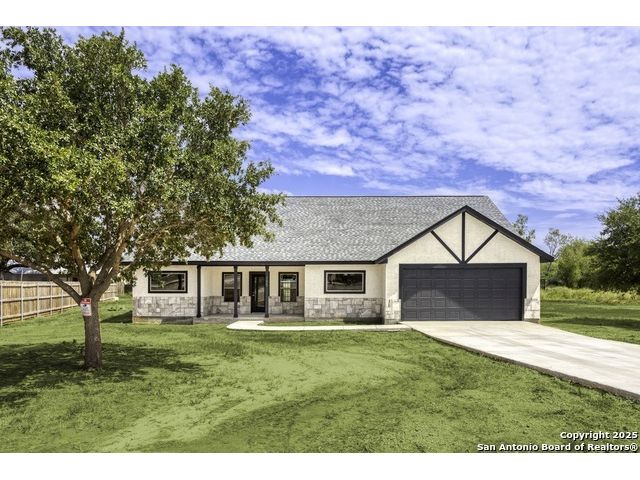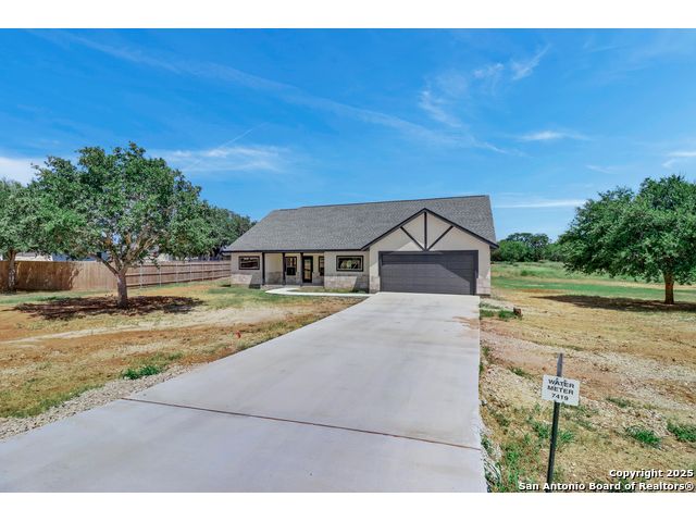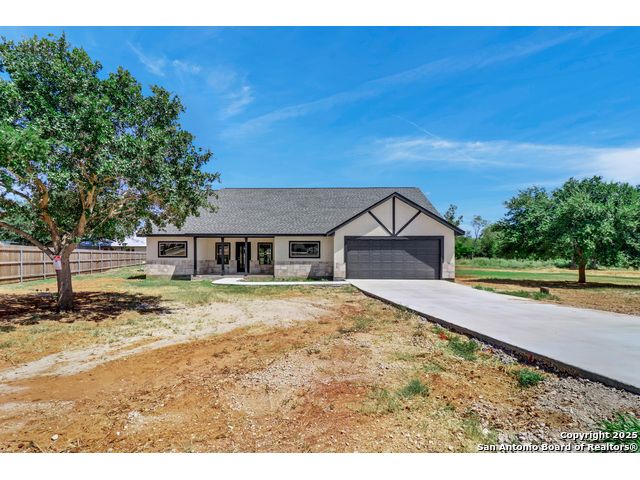 Home is eligible for USDA $0 down loan program. Seller is offering to cover all of the buyer's closing costs if the buyer chooses to finance the house with seller's preferred lender. Welcome to this brand new ranch style 4-bedroom, 2-bath home with a dedicated office and an oversized 2-car garage, set on a generous 0.75-acre lot just minutes from San Antonio. Offering over 2,000 sq. ft. of living space, the open layout with high ceilings creates a natural flow between the living, dining, and kitchen areas, filled with abundant natural light. The primary suite provides a luxurious retreat, while three additional bedrooms and an office offer flexibility for family, guests, or work-from-home needs. Outdoors, the expansive lot provides privacy, room to expand, and endless possibilities-whether you envision a workshop, outdoor kitchen, or a space to entertain under the Texas skies. With just the right balance of space and seclusion, this property delivers the charm of small-town living while remaining close to shopping, dining, schools, and commuter routes into San Antonio. A rare opportunity to enjoy both comfort and freedom on a spacious homesite - this home is ready to welcome its first owner.
