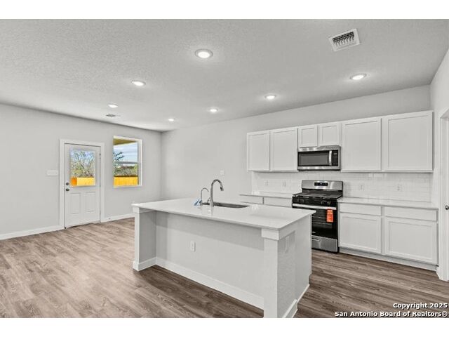 The impressive Eleanor floor plan offers a popular open-concept layout designed for comfort and style. The porch entry leads past a convenient mud room into an expansive great room, which encompasses a dining area and a well-equipped kitchen with a large walk-in pantry and a center island. You'll also find a roomy bedroom with a walk-in closet and a full bath on this level. There are three generous bedrooms upstairs-each with a walk-in closet!-including a luxurious owner's suite with a private bath showcasing dual vanities and a walk-in shower. A versatile loft space completes this plan. Additional home highlights and upgrades: 36" white kitchen cabinets, quartz countertops and backsplash Luxury wood-look vinyl plank flooring in common areas Stainless-steel appliances Soft water loop upgrade Additional recessed lighting throughout home Garage door opener with two remotes Landscape package with sprinkler system Exceptional included features, such as our Century Home Connect smart home package and more!