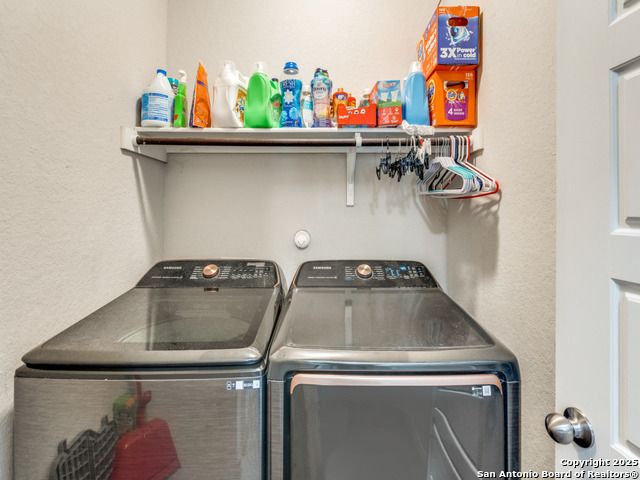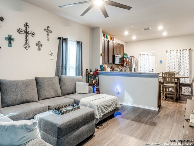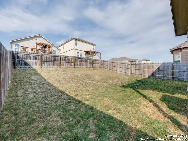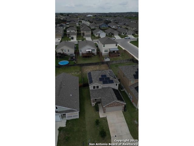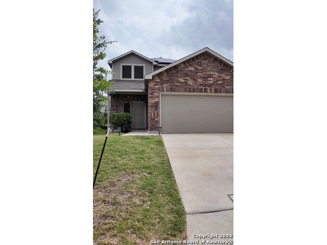 Beautiful 5-bedroom, 3-year-old home located just minutes from Randolph AFB. This open-concept floorplan offers a spacious layout with a first-floor master suite featuring upgraded luxury vinyl plank flooring. The kitchen is fully equipped with stainless steel appliances, and the refrigerator, washer, and dryer all convey. Solar panels provide year-round energy savings. The large backyard includes a covered patio, perfect for outdoor living and entertaining. Move-in ready and conveniently located near shopping, dining, and major highways. Seller Financing Available!!