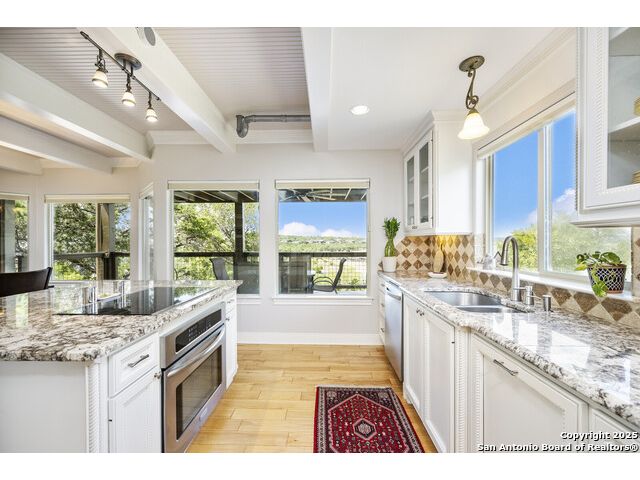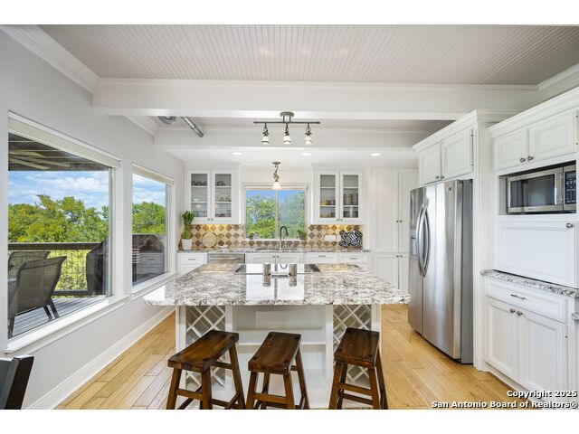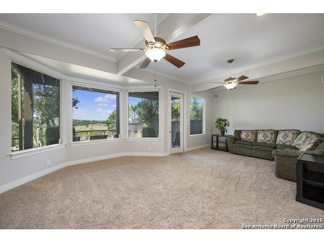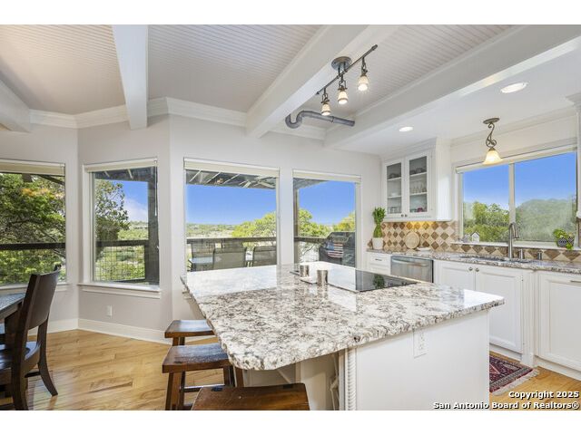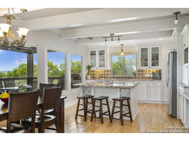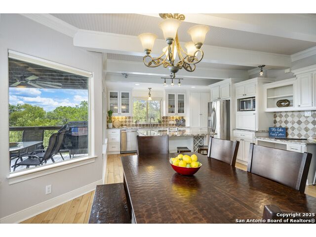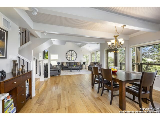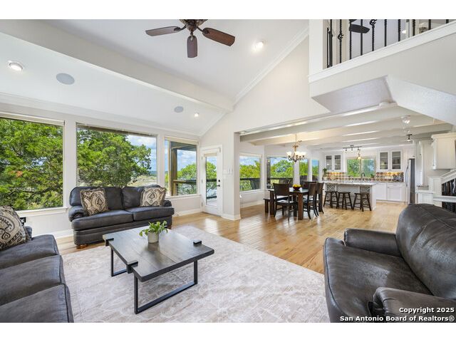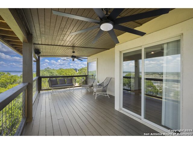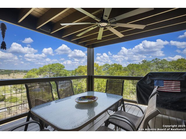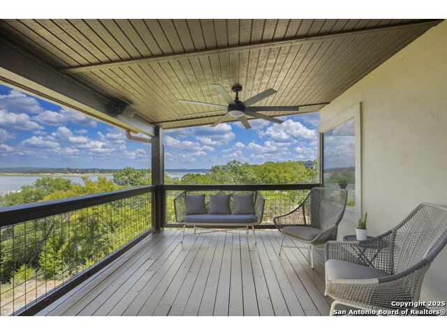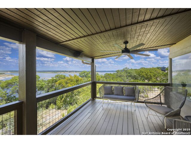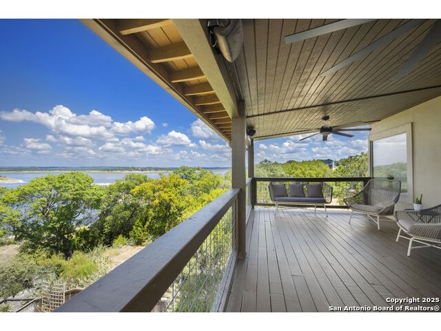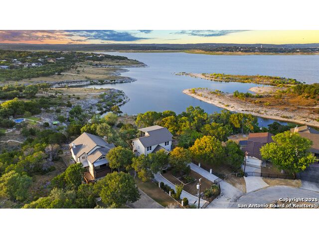 Look at those Canyon Lake views! This Texas style home is ready for entertaining, move-in ready and FULLY FURNISHED. With 6 bedrooms, 4 baths, media/gameroom and living room are ready for guests and family to enjoy! Main floor features 3 bedrooms and large media/gameroom. 2 Primary masters compliments this living space. Second floor is cozy with open dining concept, laundry room and more amazing views of Canyon Lake and one of its great coves. Kitchen is well stocked with all you need to entertain family and friends. Enjoy 2nd level balcony for brunch, lunch or dinner! Backyard down the hill has a great firepit and seating for those cozy Fall TX eventings to enjoy! Topography allows for a gentle stroll to the water. Come get your piece of the Texas Hill Country! Great second home, too!