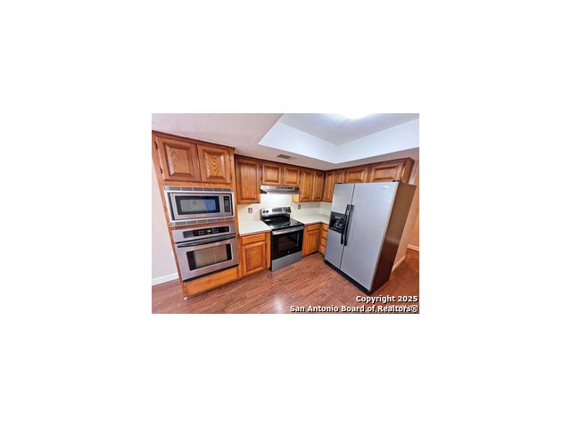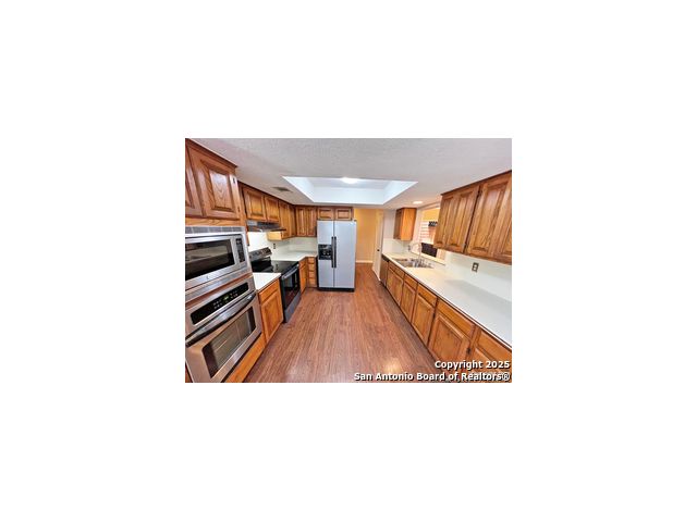 Beautiful 3 bedroom, 2 bath townhome-style condo, 1,719 sqft w/ NEW carpet, NEW stove & NEW dishwasher! Abundant natural light, cozy skylit wet bar area, functional layout ideal for comfortable living and entertaining w/ comfy fireplace! Enjoy the view of the serene common grounds w/ mature trees from the comfort of your own patio. Attached spacious 2car garage with built-in cabinets, water softener. Security of a well-maintained community w/ top HOA amenities including pool, clubhouse, tennis courts, maintenance, trash and more! Refrigerator, Washer & Dryer ALL included! Prime North Central location in top rated NEISD schools, near shopping, dining, medical and easy access to 1604 & 281, don't miss this one!!