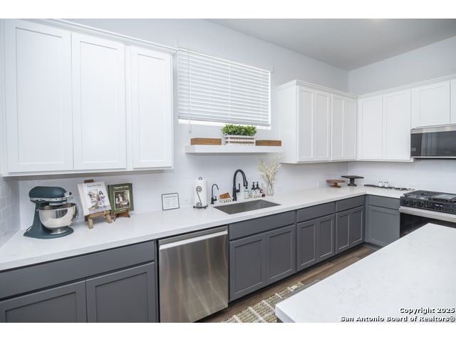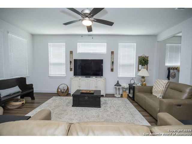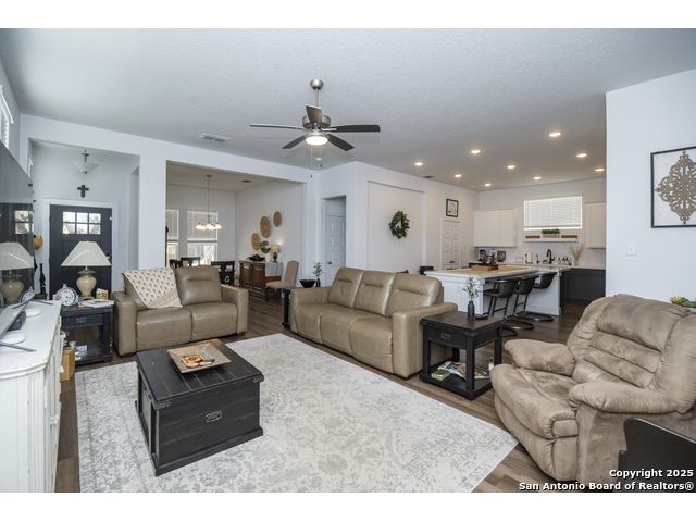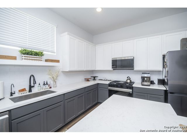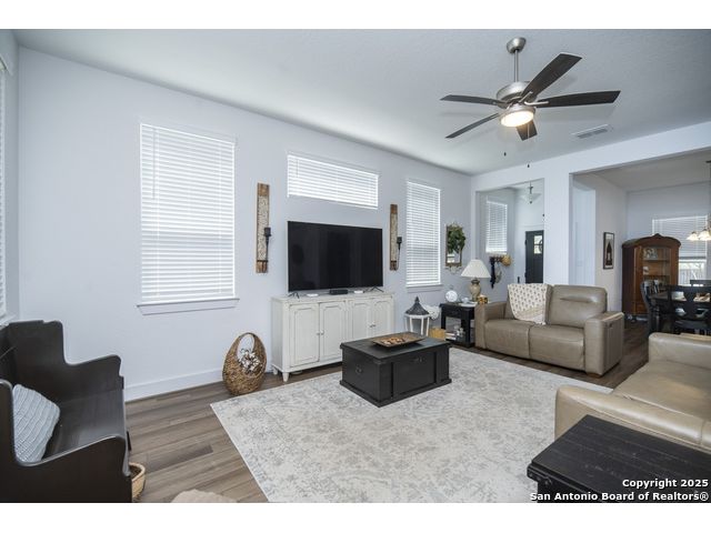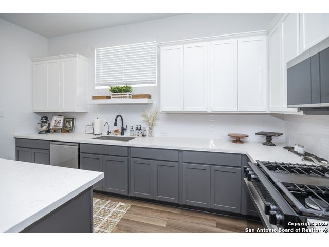Gorgeous family home in the private gated community of Winding Oaks. NEISD schools!!! Luxury vinyl plank floor downstairs. Bright and open family room area with an abundance of natural light and upscale architectural details. The gourmet kitchen includes quartz counters, New Samsung Bespoke AI appliances, an extended kitchen island, gas cooking, and more. Upgrades throughout, water softener, sprinkler system, EV charger, too many to list. Did I mention the covered patio, heavily treed backyard, and backs to a green space. Schedule your showing today!