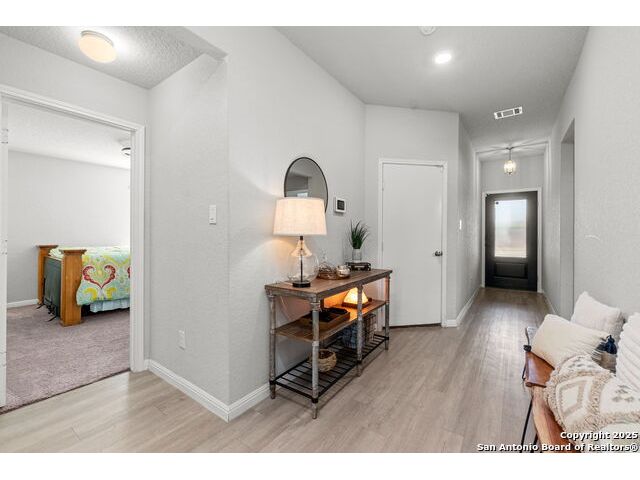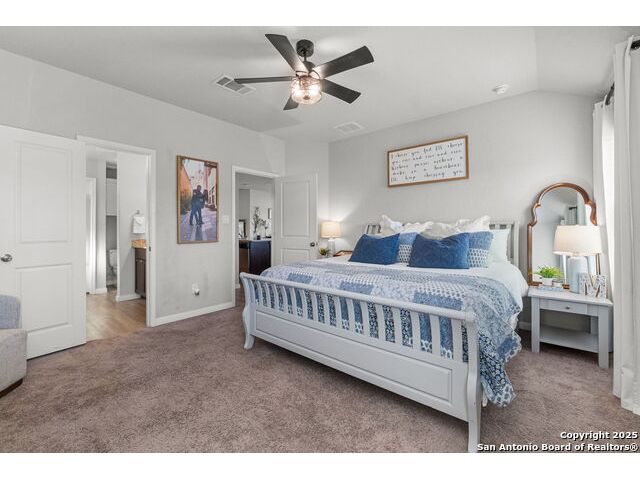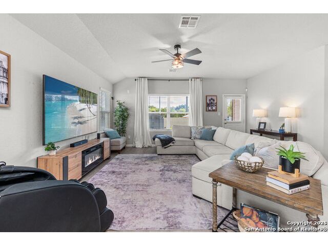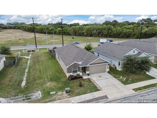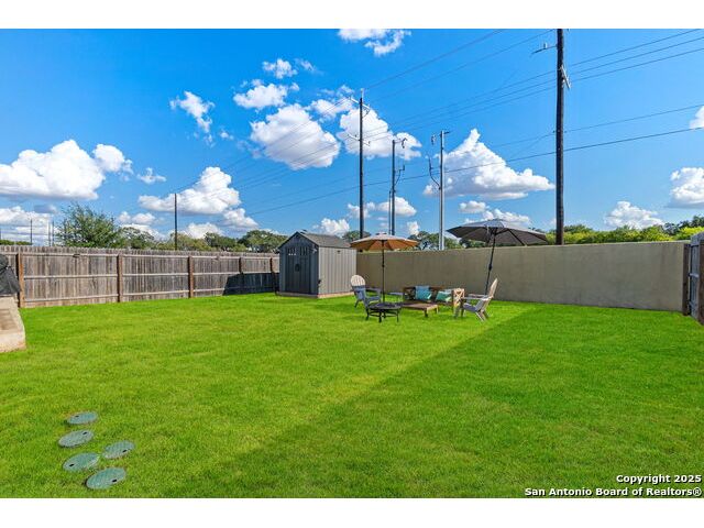 This house comes with a REDUCED RATE as low as 4.990 (APR 5.409) as of 10/3/2025 through List & LockTM. This is a seller paid rate-buydown that reduces the buyer's interest rate and monthly payment. Terms apply, see disclosures for more information. This well-maintained one-story home offers 4 bedrooms and 3 full bathrooms, thoughtfully designed for comfort and flexibility. From the moment you enter, soaring high ceilings and an open layout welcome you, creating a bright and inviting space for everyday living and entertaining. The spacious kitchen is a chef's dream, featuring granite countertops, stainless steel appliances, gas-cooking, ample cabinetry, and a large island with bar seating that flows seamlessly into the living and dining areas. The primary suite feels like a private retreat, complete with dual vanities and a walk-in shower. One of the secondary bedrooms includes its own en suite bathroom, ideal for guests or multigenerational living. Carpeting in the bedrooms adds comfort, and blinds are included throughout. Step outside to a spacious backyard with no direct neighbors behind-perfect for outdoor entertaining, gardening, or simply enjoying the Texas sky. A backyard shed is available to store lawn and garden equipment. Conveniently located near Randolph AFB, with quick access to major highways, shopping, and dining, this property blends function, charm, and location. Truly move-in ready and waiting for its next chapter!