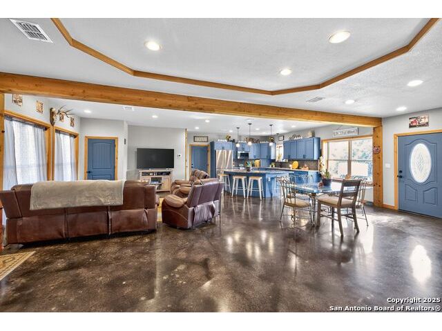Discover the perfect blend of rustic charm and modern luxury in this stunning 3-bedroom, 2-bathroom barndo. Built in 2024. Nestled on 1.94 unrestricted acres, this property offers both freedom and functionality with room to expand, build, or enjoy wide-open space. Step inside to a spacious open-concept layout, highlighted by high ceilings, designer finishes, and an abundance of natural light. The luxurious master suite is a true retreat-featuring a private sitting area, a massive walk-in closet, and a spa-inspired bathroom with high-end fixtures and finishes. The two additional bedrooms offer ample space for family, guests, or a home office. The sleek kitchen and open living area are perfect for entertaining or cozy nights in. Whether you're looking to homestead, or simply enjoy quiet country living with no HOA or restrictions-this property has it all.