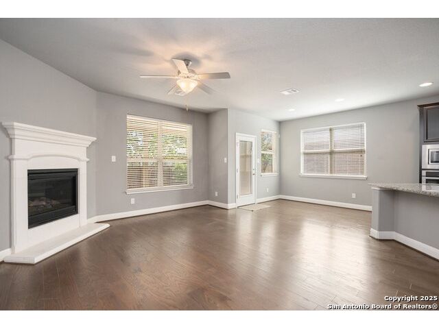 **Owner financing offered to qualified buyers.** Move-in ready, this 1.5-story home is located in the gated community of Castle Hills, offering both convenience and comfort. The location is hard to beat-just 10 minutes from the airport, within two miles of three HEB grocery stores, and with easy access to all major highways and downtown. The neighborhood itself is a newer gated subdivision where all homes are less than 10 years old. Original owner, no pets and non-smoking. Inside, the open floor plan creates a welcoming flow throughout the first level. The spacious living room features a fireplace and connects seamlessly to the kitchen and breakfast area. The kitchen offers stainless steel appliances, a breakfast bar, generous cabinetry, and plenty of counter space. Outside access from this area makes it easy to enjoy indoor and outdoor living. The primary suite is located on the first floor and includes an ensuite bath with a soaking tub, walk-in shower, and double vanity. Two well-sized secondary bedrooms are also downstairs, providing convenience and flexibility for family or guests. Upstairs, you'll find a large second living area, perfect for a game or play room, along with a dedicated media room. This home is designed with energy efficiency in mind, featuring foam insulation, Energy Star appliances, and low-e3 windows. Recent updates include a new roof in July 2017 and a water heater with replaced pressure tank, elements, and thermostats. Don't miss the chance to make this your next home-schedule your personal tour today!