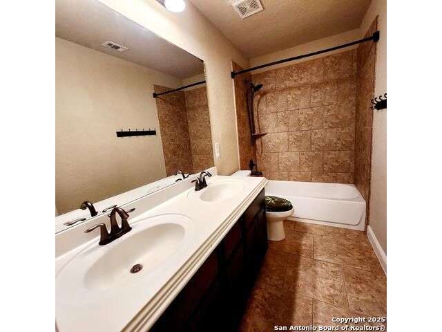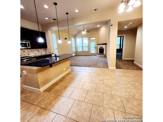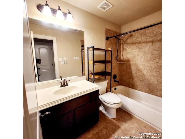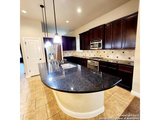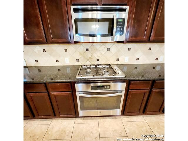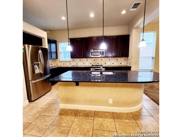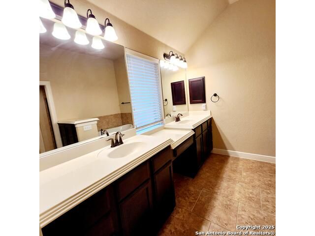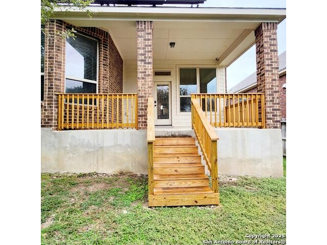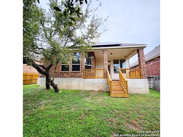 This is a beautiful 4 bed 3 1/2 bath home with office and solar panels, filtered water softener system, located in The Preserve of Alamo Ranch. The home has 3 bedrooms downstairs which included the master and a 4 bedroom on the 2nd floor with its own bathroom. It has a beautiful tiled entry way that goes into an open floor plan, that has a large kitchen with a tiled backsplash granite counter tops and an island. The kitchen boasts stainless steel appliances (refrigerator, dishwasher and a gas stove. It opens to a large family room with a gas fireplace. The home has large master suite and bathroom that has a double vanity, garden tub and stand-up shower. The home also has large laundry room that comes with a stainless-steel washer and dryer set. Large game room on the 2nd floor that leads into a 4th bedroom with full bath. The owner has a Farm door installed to the entry of the garage. The garage is finished with latex floor lining, a sprinkler system. There is new railing and stairs on the large patio w/gas hookup for an outdoor grill and backyard that is great for large family gatherings. The home also features Nest Thermostat, Camera on the interior and exterior of the home. The community has a pool and playground for children. Quick access to highway 1604, close proximity to Seaworld and Lakland AFB.