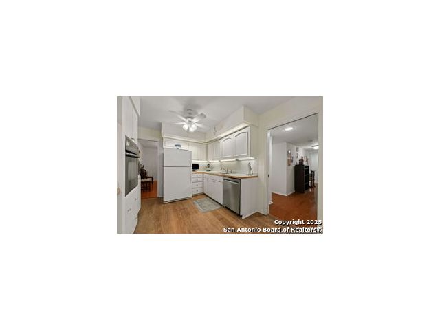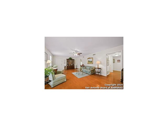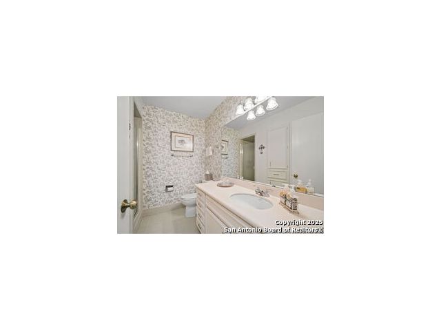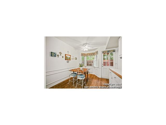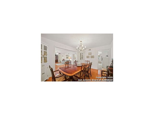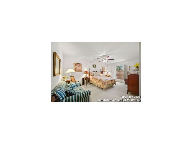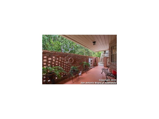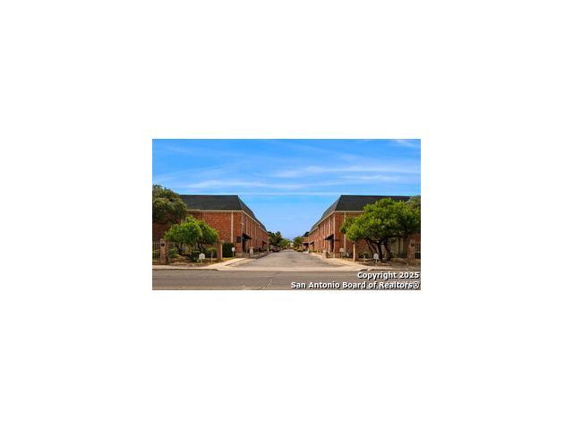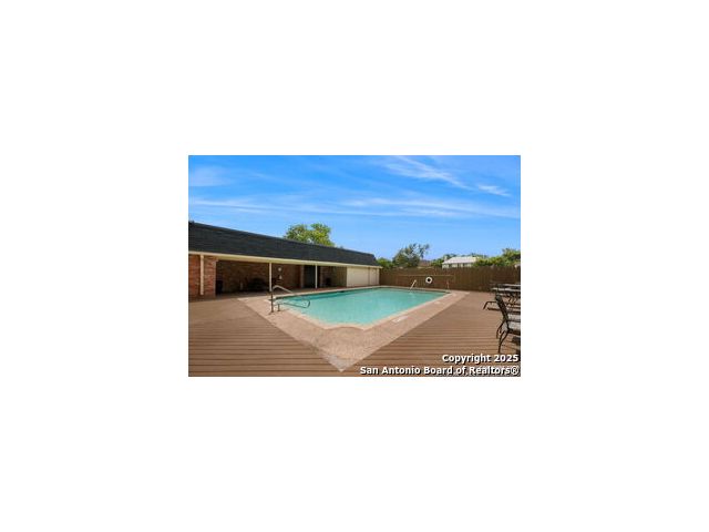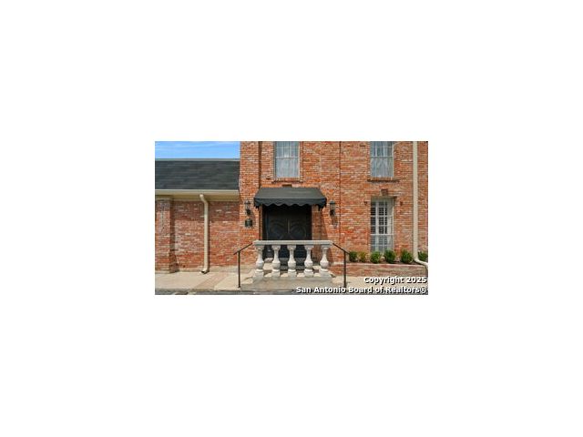 Step into the pinnacle of convenience and luxury at this Alamo Heights area, Alamo Heights ISD condominium. A stylish and cheerful front entrance greets you at this first floor home with open floor plan. The large living room with wood floors, high ceilings and an abundance of natural light is ideal for welcoming family and friends. A dedicated dining area flows seamlessly into the kitchen, while a charming bay-window breakfast room overlooks a private patio-ideal for gardening, morning coffee, or relaxing outdoors. The well-equipped kitchen includes a large utility closet with space for full-size, side-by-side washer and dryer, along with generous storage. The secondary bedroom is spaciously designed, with a large closet. A sophisticated guest bath adorned with custom wallpaper is sure to impress. Additional hallway closets ensure you'll never run out of storage. The primary suite is a true retreat, featuring a sitting area, patio view, and an expansive walk-in closet. The primary bath is thoughtfully designed with a vanity/dressing area and a private water closet with tub/shower combo. What sets this home apart is the third bedroom. Outfitted with built-ins, it can easily serve as a versatile office or family room. French doors open directly onto the pool-essentially a private extension of your living space, perfect for year-round enjoyment and entertaining. Practicality meets convenience with an exclusive two-car carport just steps from the front door and an under-stairs storage closet. Located at the Royal George Condominiums, you'll be within walking distance of excellent shopping, dining, and top-rated Alamo Heights schools.