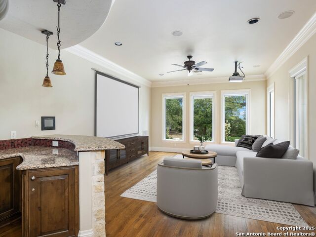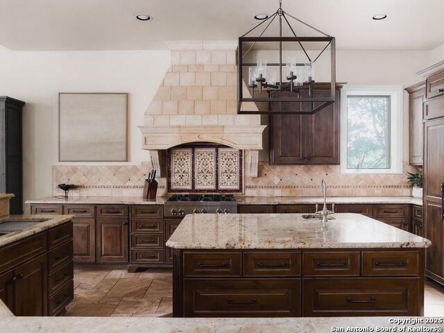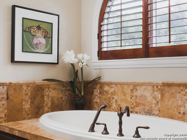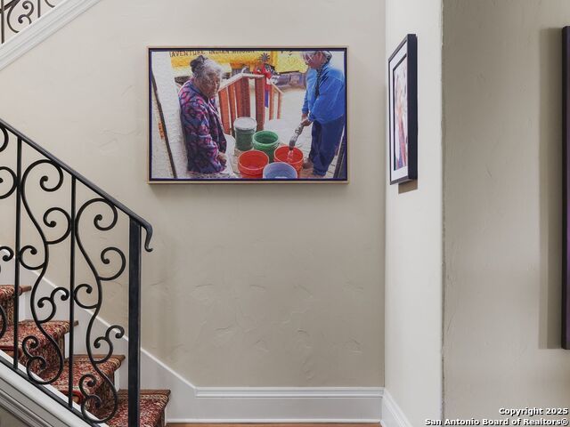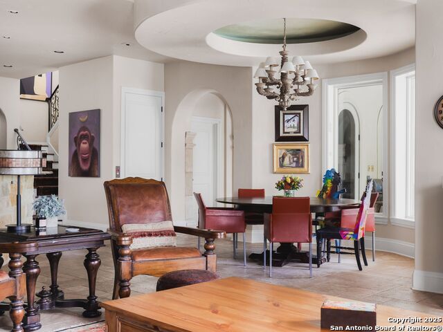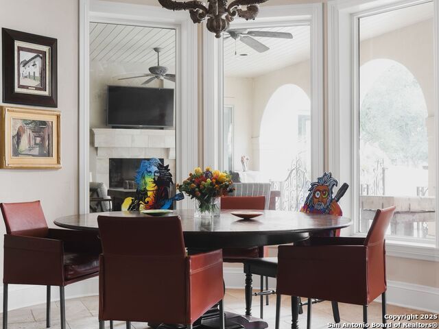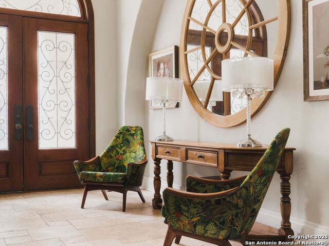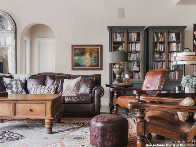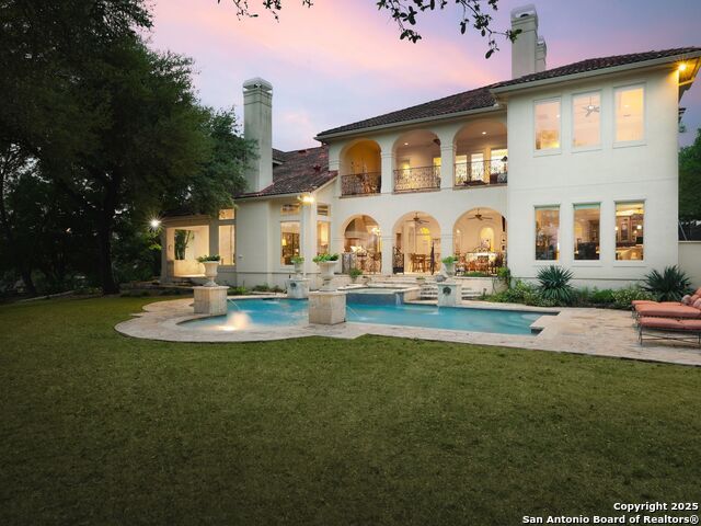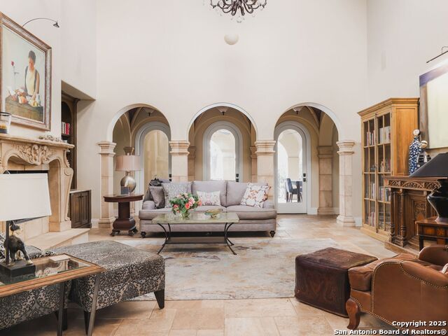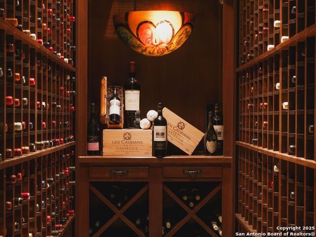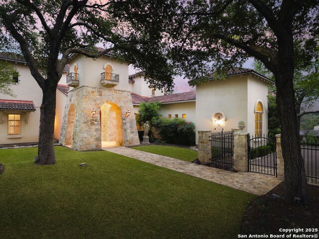 Set amidst nearly half an acre of lush, park-like grounds, this Terrell Hills estate is a masterpiece of timeless elegance and sophistication. Every element of this residence has been meticulously curated to exude style and luxury, creating an ambiance of truly refined living. Upon entry, the home's grandeur immediately unfolds. Lavish travertine and rich hardwood floors are complemented by exquisite custom millwork, establishing a foundation for an unparalleled lifestyle. The gourmet kitchen is outfitted with top-of-the-line appliances and seamlessly flows into inviting living areas defined by soaring ceilings and lush, verdant views. The main level showcases exceptional amenities, including a well-appointed guest suite with a full bath, a phenomenal media room complete with wet bar and outdoor access, an elevator, a climate-controlled 1,000-bottle wine cellar, and a spacious mudroom. In addition, the downstairs level features a fully equipped guest apartment with its own living room, bedroom, full bathroom, and kitchen-ideal for long-term guests or extended family. Upstairs, the elegant primary suite serves as a private sanctuary, boasting dual walk-in closets, a dedicated office, a private living space with a fireplace, and an expansive patio overlooking the breathtaking grounds. A spa-inspired bath completes the suite, offering the ultimate retreat for relaxation and rejuvenation. In addition, the upstairs features another spacious living room plus three generously sized bedrooms with ensuite bathrooms, ensuring comfort and privacy. Outdoors, the resort-style grounds feature a covered patio, a fully equipped outdoor kitchen, and a pool accented by captivating water features. A gated entrance and parking court provide both security and convenience, while a separate, secondary structure further enhances the property, ideal for an exercise studio, hobby space, or additional storage, tailored to suit the most discerning needs. In every respect, this Mediterranean-style estate represents the pinnacle of refined living, blending timeless architecture, luxurious amenities, and an incomparable location to deliver an extraordinary lifestyle experience.