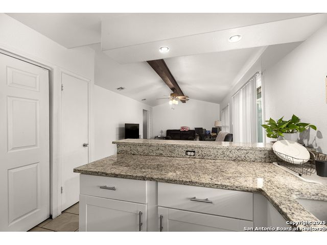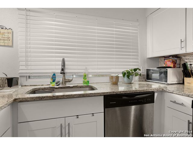 Welcome to 6617 Spring Lark, an updated townhome in San Antonio that is located close to UTSA, USAA and the Medical Center. Featuring 2 bedrooms and 1 bathroom, this 880 sf home lives large. It features updates throughout, including white custom cabinets, beautiful tile floors, granite counters, recessed lighting and ceiling fans. The roof is only 2 years old and the front door and sliding patio door are new. New carpet to compliment the bedrooms as well. Outside there is a small manageable yard with landscaping in the front and a newly poured concrete slab in the back, perfect for grilling! This townhome was recently leased to a long term tenant and is a proven investment property. Don't let this one pass you by!