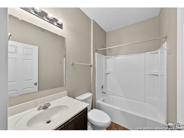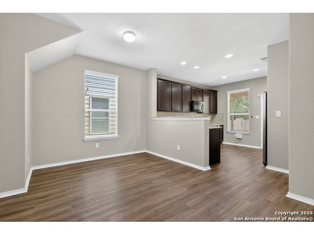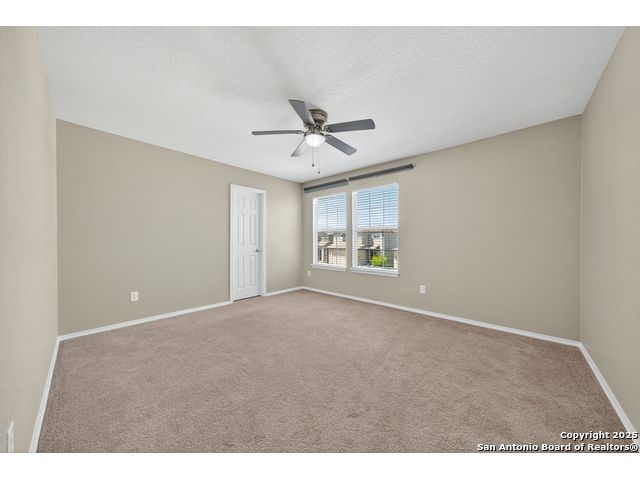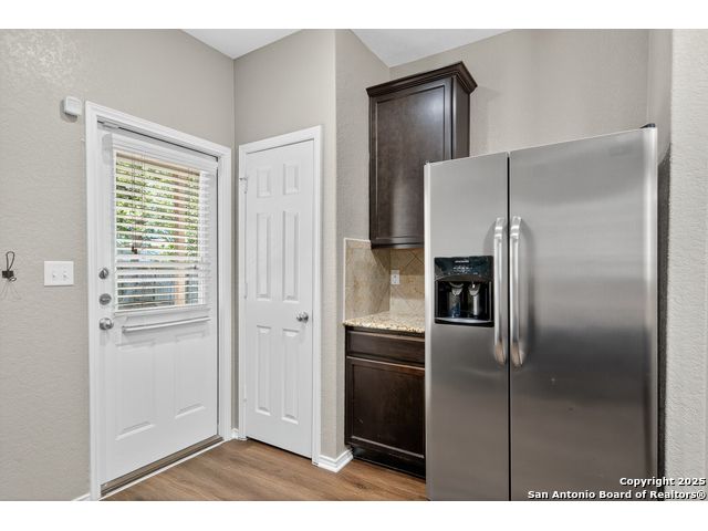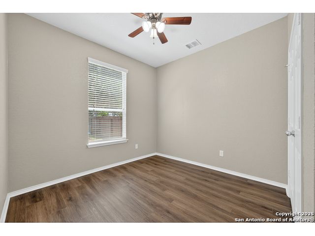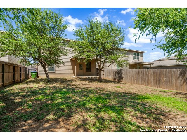 Gorgeous 4-bedroom, 3-bathroom home in the highly desirable Kensington Ranch subdivision of Selma, TX. Step through the inviting entryway into a bright and spacious living room featuring newly installed vinyl plank flooring throughout the first floor. Large windows fill the space with natural light, and the open-concept design seamlessly connects the living area to the kitchen-perfect for entertaining. The kitchen is well-appointed with abundant cabinetry, granite countertops, a stylish tiled backsplash, and matching black appliances, complemented by a stainless steel refrigerator. A secondary bedroom and full bathroom are conveniently located downstairs, ideal for guests or multi-generational living. Upstairs, the master suite offers a private retreat complete with double vanities, a large walk-in shower, and a generous walk-in closet. Two additional secondary bedrooms upstairs are spacious, each with ceiling fans, and an upstairs game room provides extra space for work, play, or relaxation. Enjoy outdoor living on the covered back patio overlooking the private fenced yard-perfect for gatherings or quiet evenings. This home is ideally situated just minutes from Randolph Air Force Base, with quick access to I-35 and Loop 1604. Part of an award-winning school district, it's a pleasure to show and ready to welcome its next owner.