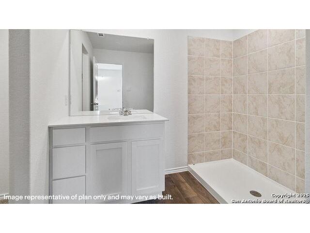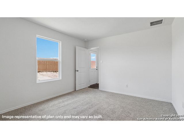 The Estero is a charming one-story home featured in Laurel Vistas in San Antonio, TX. Featuring 2 classic front exteriors, this 4 bedroom, 2 bathroom home also offers 1586 square feet of living space and a 2-car garage. A front porch (per plan) welcomes you into the home and opens to the gourmet kitchen which includes quartz counter tops, shaker style cabinets, stainless steel appliances and an open concept floorplan with the kitchen flowing seamlessly into the dining room and living room. The main bedroom has an attractive ensuite bathroom that features a quartz vanity countertop, shaker style cabinetry and a spacious tiled walk-in shower. Enjoy additional storage with a large walk-in closet in the primary bedroom. Your secondary bedrooms all feature quality carpet flooring and a closet, and can be used as bedrooms, offices, work out spaces or other bonus rooms. The possibilities are endless with The Estero floor plan. Additional features include sheet vinyl flooring in entry, living room, and all wet areas, quartz counter tops in all bathrooms and HOME IS CONNECTED base package. Using one central hub that talks to all the devices in your home, you can control the lights, thermostat and locks, all from your cellular device.