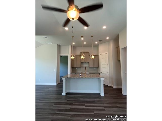 Welcome to 216 Connor Creek, a beautifully designed single-story home in the scenic Hunters Ranch community of Far Northwest San Antonio. This 4-bedroom, 2-bathroom home offers 1,522 sq ft of thoughtfully planned living space, ideal for modern lifestyles. At the heart of the home is a stunning upgraded kitchen, featuring premium gas appliances, a large island, generous pantry, and a dedicated dining area-perfect for both everyday meals and entertaining. Just beyond, the covered rear patio extends your living space outdoors. The primary suite is privately located at the rear of the home and includes a spa-like bathroom with a walk-in shower, dual sinks, and a spacious walk-in closet with custom built-ins. Guest bedrooms are thoughtfully positioned toward the front of the home, with a shared bath and an additional bedroom tucked away-ideal for visitors or multi-generational living. Additional highlights include: Open-concept layout filled with natural light Energy-efficient construction Smart layout designed for comfort and privacy Located in Hunters Ranch, with easy access to top-rated Medina Valley ISD schools, shopping, dining, and entertainment.