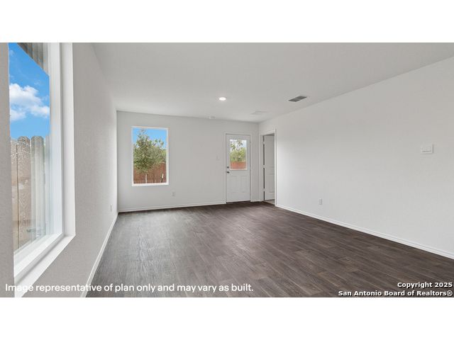 The Atlanta is a charming one-story home featured at Laurel Vistas in San Antonio, TX. Featuring 2 classic front exteriors, this 3 bedroom, 2 bathroom home also offers 1156 square feet of living space and a 2-car garage. A front porch (per plan) welcomes you into the home and opens to the gourmet kitchen which includes quartz counter tops, quality cabinets, stainless steel appliances and an open concept floorplan with the kitchen flowing seamlessly into the dining room and living room. The main bedroom has an attractive ensuite bathroom that features a quartz vanity countertop and quality cabinetry. Enjoy additional storage with a spacious walk-in closet located off of the primary bathroom. Your secondary bedrooms all feature quality carpet flooring and a closet, and can be used as bedrooms, offices, work out spaces or other bonus rooms. The possibilities are endless with The Atlanta floor plan. Additional features include sheet vinyl flooring in entry, living room, and all wet areas, quartz counter tops in all bathrooms and HOME IS CONNECTED base package. Using one central hub that talks to all the devices in your home, you can control the lights, thermostat and locks, all from your cellular device.