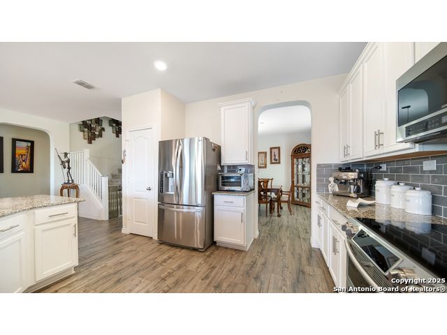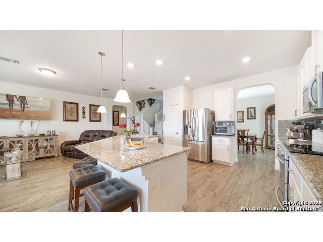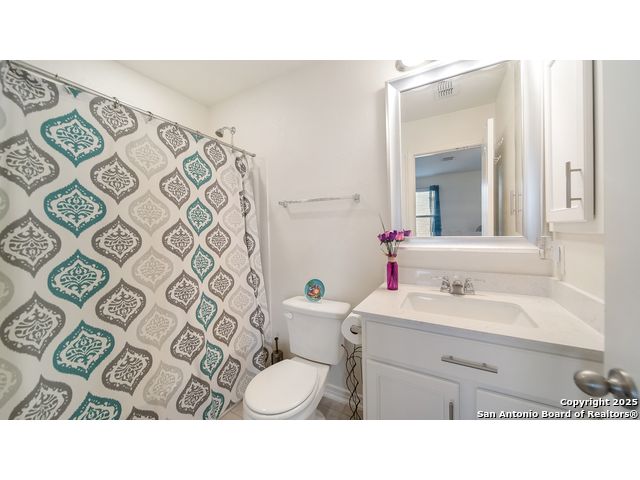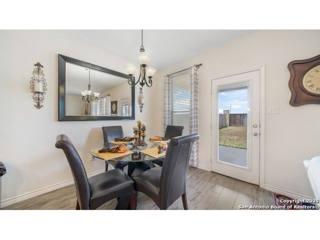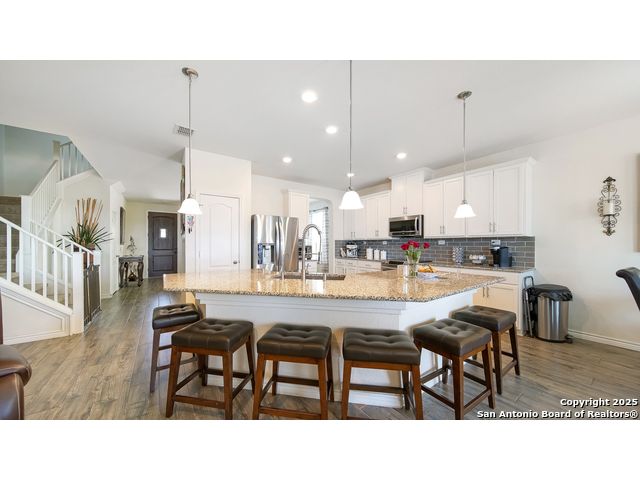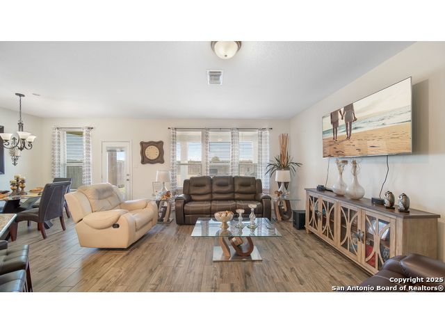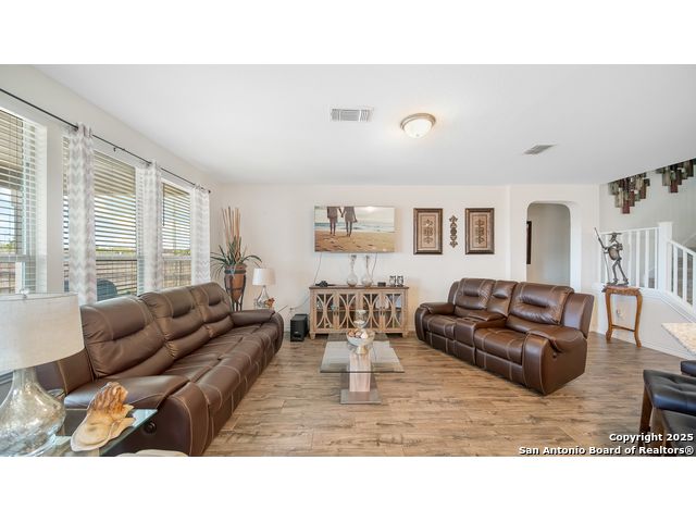Gorgeous two story 4 bedrooms 3.5 bathroom home with no back neighbors which allows for privacy and relaxation. This home has all new flooring throughout. There is beautiful luxury tile that looks like wood flooring downstairs and a new carpet upstairs. The downstairs offers a large formal dining room, high ceilings, and open floorplan. The living room has tons of space and plenty of windows to allow for an ample amount of natural light! The island kitchen has plenty of bartop & counter space, large pantry, and lots of cabinets. Upstairs offers a game room or second living area, and all secondary bedrooms. One of the bedrooms has its own bathroom making it a junior suite. The master bedroom is downstairs and it is a great size with a master bathroom with double vanity, and large garden tub shower combo. Laundry room is downstairs. This home has a water softener. Conveniently close to I-35, Randolph AFB, Shopping, Super-Grocery Store, Upscale Theater/Entertainment, and right across from NorthEast Lakeview College!