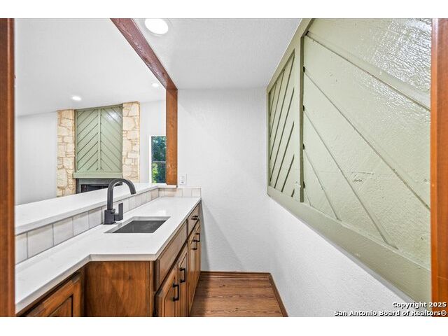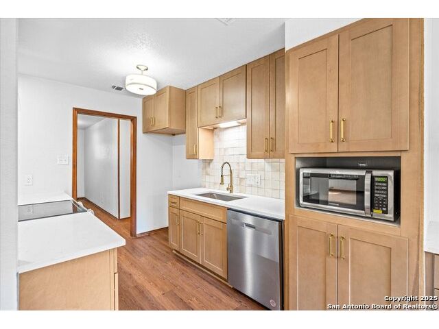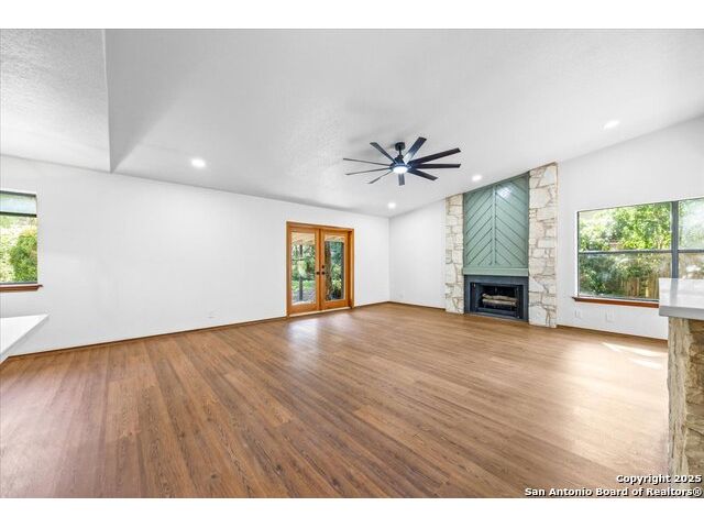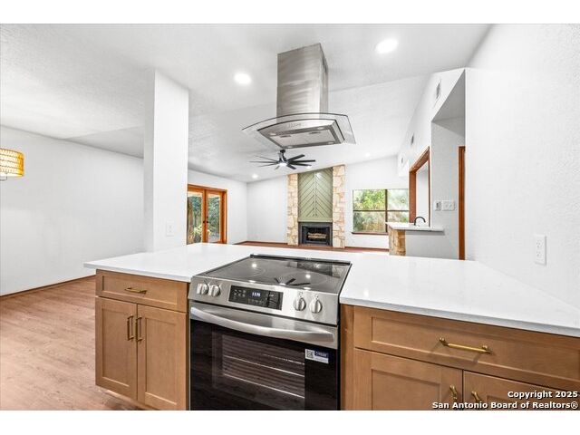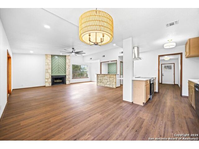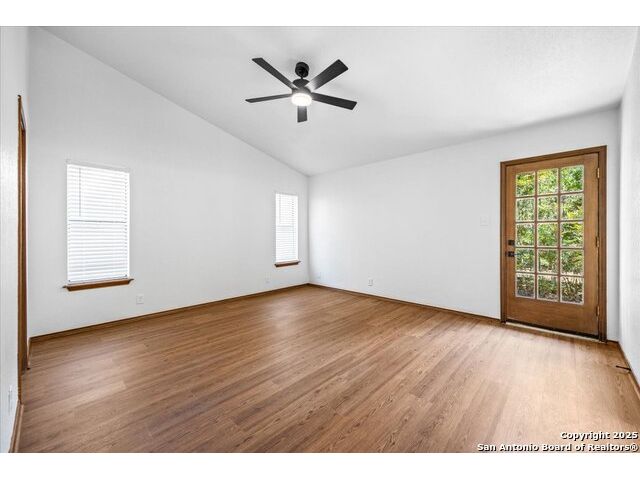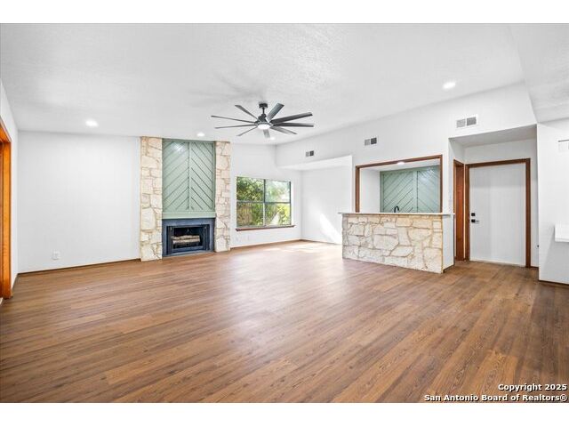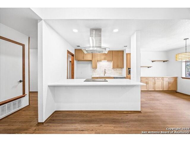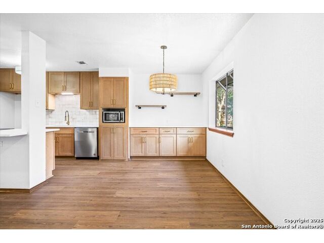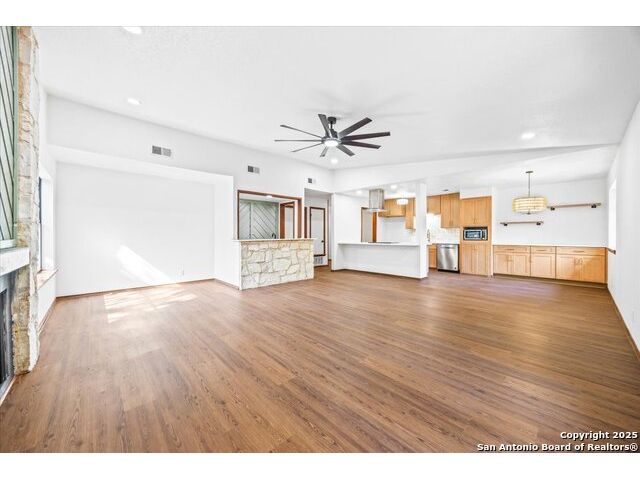 OPEN HOUSE 9am-5pm, 12/4, 12/5 and 12/6. Discover the perfect blend of timeless character and modern luxury in this custom single-story home, nestled in the heart of Green Spring Valley. This renowned community is a true escape, defined by its mature trees and a list of amenities that can't be beat. Every inch of this home has been thoughtfully renovated. The open-concept design creates an inviting atmosphere, with a seamless flow from the living room, complete with a classic wet bar, to the dining area and kitchen. You'll find a fresh, contemporary feel thanks to new paint and beautiful LVP flooring, which runs throughout the entire home-no carpet in sight! There is even a new roof and double pane windows so you don't have to worry about a thing. The kitchen is a showcase of clean design, featuring new cabinets and beautiful quartz countertops. Both bathrooms have also been completely transformed with the same high-end finishes offering a spa-like feel. Outside, the property is a private sanctuary. A covered patio provides a perfect spot for morning coffee. The expansive backyard, shaded by majestic oaks, offers a blank slate for your personal touch, whether it's a lush garden or a vibrant play area. This home is not just a place to live; it's a lifestyle. Enjoy access to a community pool, tennis, basketball, and pickleball courts, plus a 32-acre nature park with walking trails and picnic areas. With easy access to major highways (1604, 410, and 281), you get the perfect blend of a peaceful suburban setting with the convenience of city life.