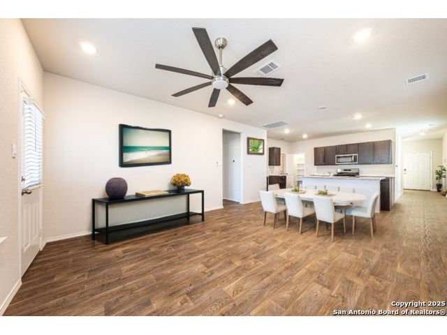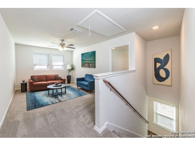 Discover your dream home! This spacious 2,043 sqft gem boasts 4 bedrooms and 2.5 baths, nestled in the vibrant community of Riverstone at Westpointe. This subdivision is filled with amenities that must be seen to be believed! Step inside and be captivated by the open-concept main floor, perfect for entertaining. The large kitchen features a convenient eat-in island, ideal for casual meals or afternoon gatherings. The primary bedroom, also located on the main level, offers convenience and the bathroom features a good size walk-in shower, along with a generous walk-in closet. Head upstairs to find a fantastic game/family room, designed for fun and relaxation. The additional bedrooms are spacious and well-proportioned, each with ample closet space. Outside, unwind on the lovely covered patio that overlooks a tranquil green belt, providing a serene backdrop and extra privacy in your backyard oasis. Additional features include gas cooking, a security system, and an efficient sprinkler system to simplify your life. This home combines comfort, style, and practicality, making it a perfect choice for your family. Current loan is assumable current owner leaving due to job relocation