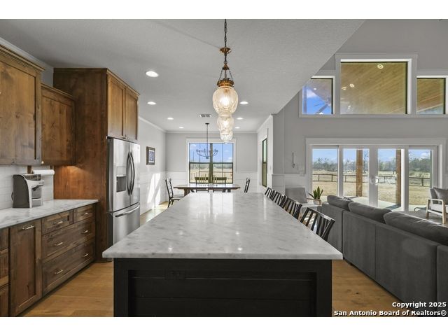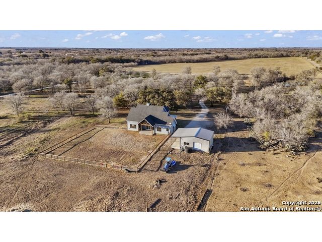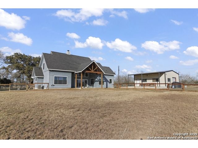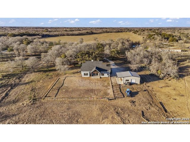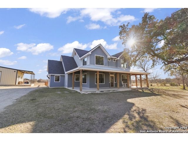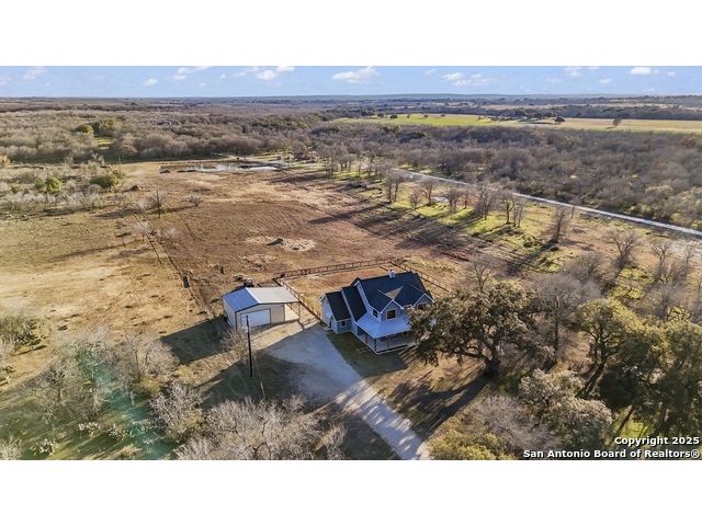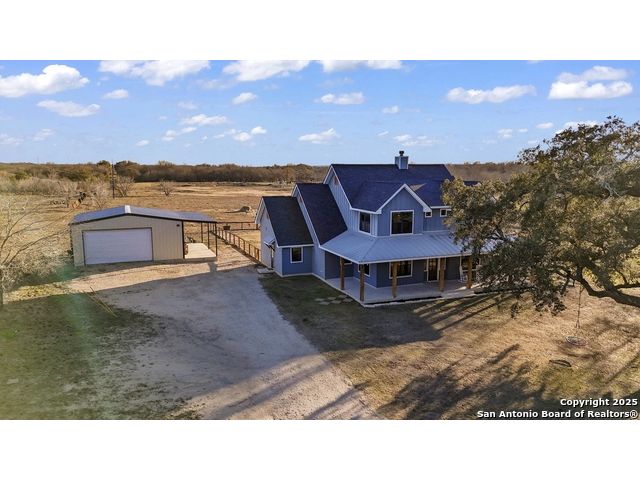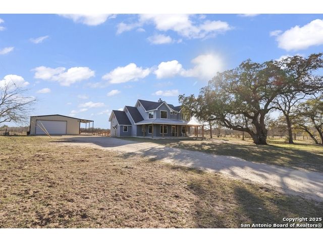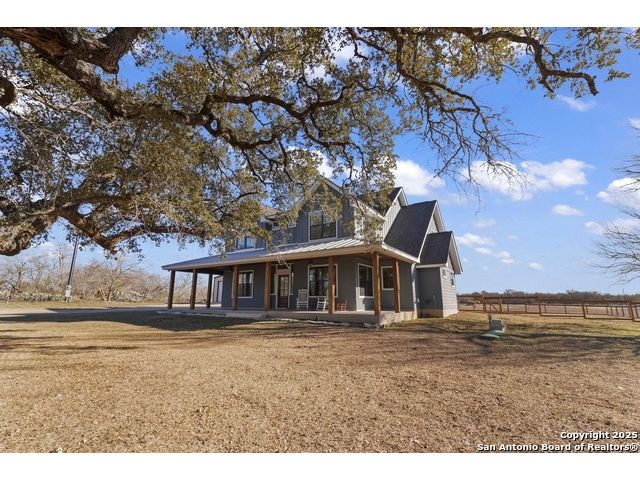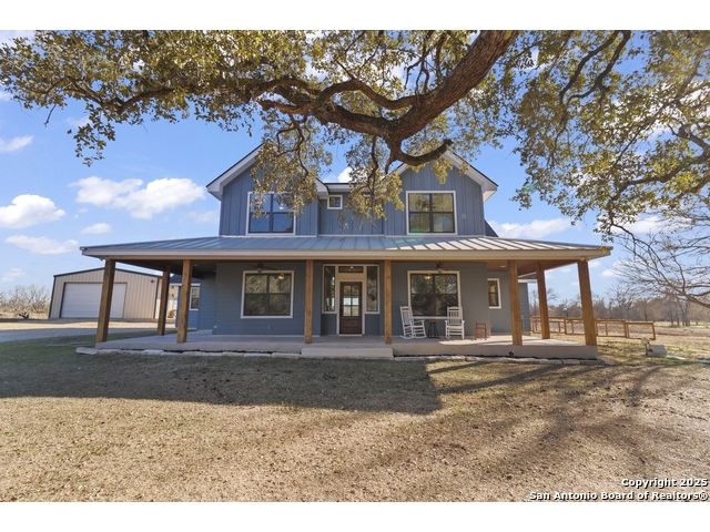 ***Still Active & Accepting Offers*** **Contingent Offer in Place** Welcome to your homesteading dream- a custom built farmhouse on 10 acres. Located in La Vernia ISD, this home features 5 bedrooms, 3 full bathrooms, a designated office and large detached 30x30 shop with dual rolling garage doors. The property is fully fenced with an additional generously-sized fenced backyard. Enjoy the charm of country living with peaceful views from the large front porch surrounded by mature trees. The stunning kitchen features ample counter-space and abundant cabinet storage. The first floor primary suite offers a luxurious on-suite and large closet. With its open floor plan, fresh paint, gorgeous wood floors and updated light fixtures this home is sure to be a welcoming retreat for all your family gatherings.