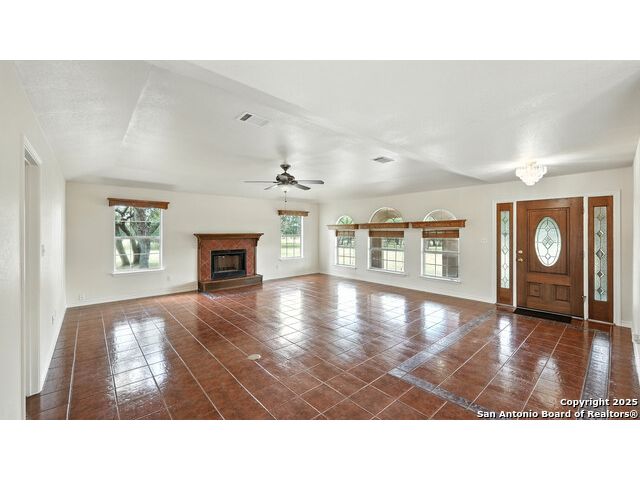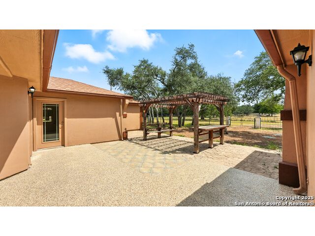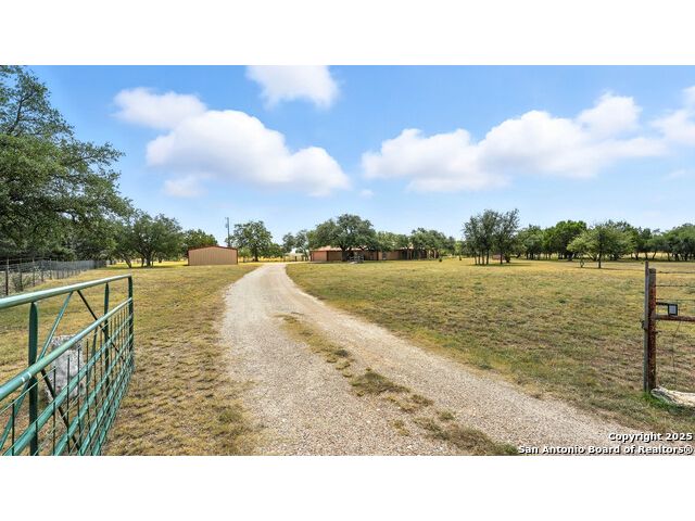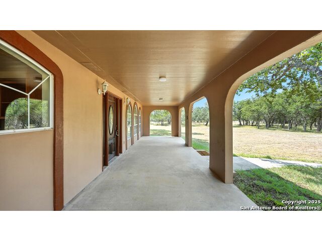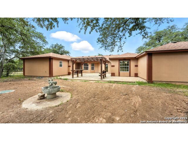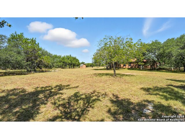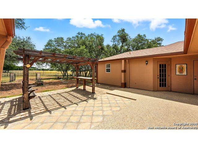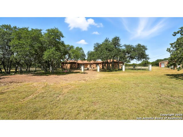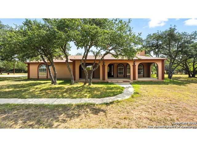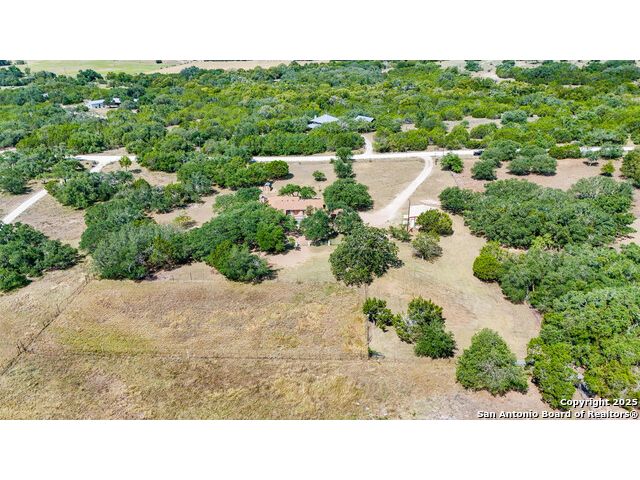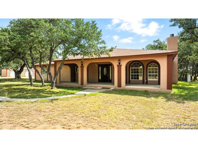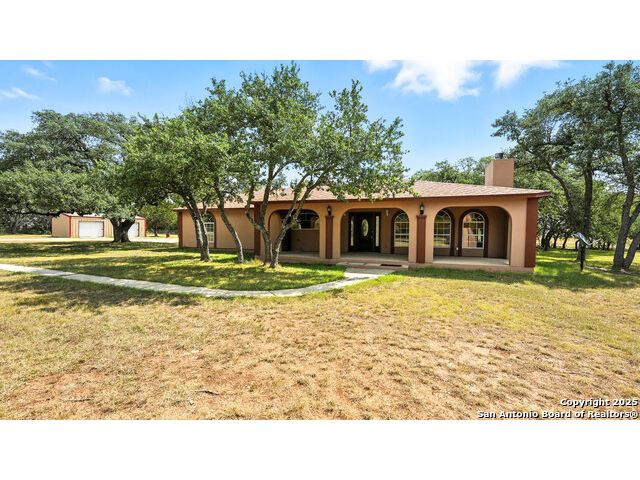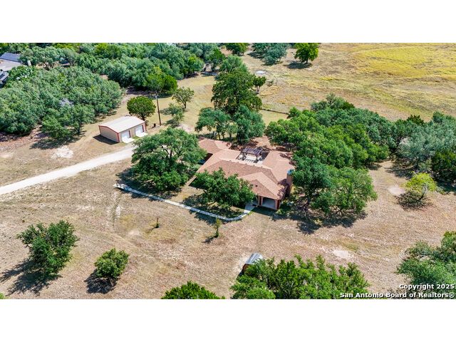 Welcome to this beautifully maintained Hill Country Haven on 7.66 Acres! This is a one-owner home in the heart of the Texas Hill Country. Offering 2,044 sq. ft. of comfortable living space, this 3-bedroom, 2-bath residence showcases pride of ownership throughout. Step inside to find a thoughtful split floor plan, freshly painted interior and exterior, and unique touches such as custom cabinetry and imported Mexican tile. The inviting living area is centered around a cozy wood-burning fireplace, creating the perfect gathering spot. Enjoy outdoor living at its finest with a spacious front porch and a back patio newley epoxied and a wooden pergola with bar and seating, ideal for relaxing or entertaining. A detached shop adds versatility-perfect for hobbies, storage, or workspace. Major updates provide peace of mind, including a new septic system in 2025, roof replaced in 2021, and A/C unit replaced in 2022. With solid updates to the essentials and timeless features throughout, it's the perfect canvas to make your own. Some photos have been virtually staged.