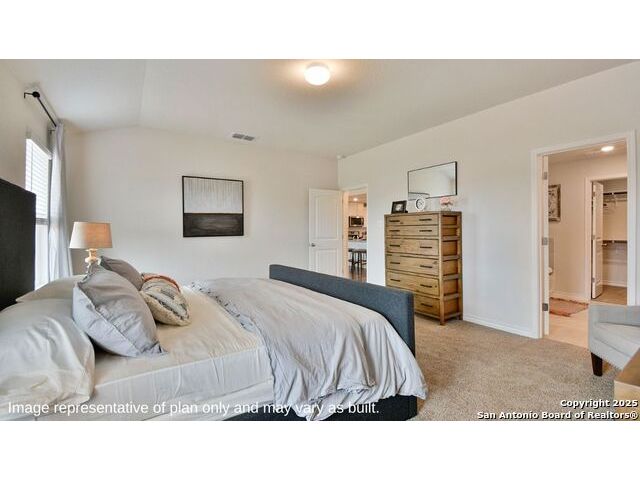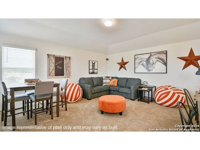 Welcome to The Walsh, a stunning two-story home located at Stonehill in San Antonio, TX. This floor plan offers 4 classic exteriors, a 2-car garage, and a full yard landscaping and irrigation package, ensuring that your home has instant curb appeal. A spacious covered front porch (per plan) welcomes you inside this 4 bedroom, 2.5 bathroom home where you'll find 2323 square feet of living space. Follow the entry hallway past a beautiful formal dining room and into the open kitchen featuring stainless steel appliances, quartz countertops, stylish white subway tile backsplash, spacious corner pantry, tons of cabinet space and a large eat-in breakfast bar. The kitchen opens to a spacious living room, complete with a stunning vaulted ceiling and easy-maintenance hard surface flooring. The living room extends to a lengthy covered back patio (per plan), perfect for outdoor dining or just simply keeping an eye on the kids while they play outside. The private main bedroom suite is located downstairs off the family room and offers dual vanities, a separate tub and walk-in shower, ceramic tile flooring, and a storage-friendly walk-in closet with shelving. Head upstairs to find a spacious game room or office area, a second full bath, and three large secondary bedrooms with quality carpet and walk-in closets. Additional features of The Walsh include 2-inch faux wood blinds throughout the home, luxury vinyl plank flooring in entryway, family room, kitchen, and dining room, ceramic tile at all bathrooms and utility room, and pre-plumb for water softener loop. You'll enjoy added security in your new home with our Home is Connected features. Using one central hub that talks to all the devices in your home, you can control the lights, thermostat and locks, all from your cellular device.