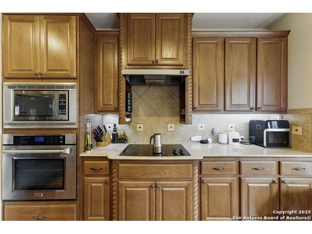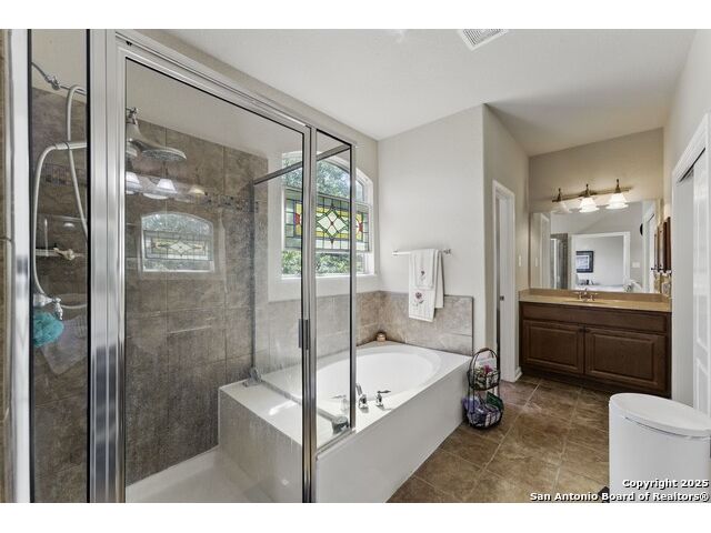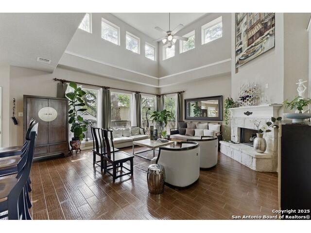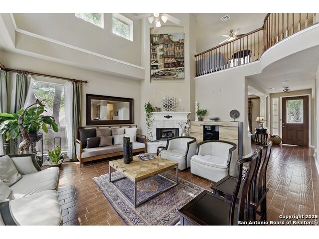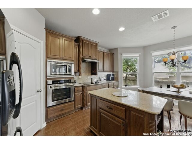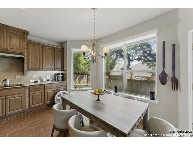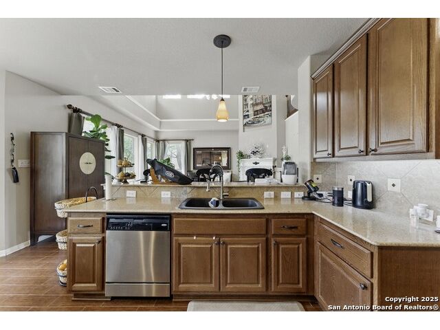 Elegance meets functionality in this spacious and sophisticated home that exudes style and dazzling appeal. This beautifully designed residence welcomes you with an inviting entryway filled with natural light and a seamless open-concept layout that transitions effortlessly between spaces creating a warm and inviting atmosphere throughout. Blending comfort with modern convenience, this home showcases soaring ceilings, recessed lighting, stone corner fireplace, whole-house water softener system and ceiling fans throughout. At the heart of the home, the chef-inspired kitchen makes a stunning statement with granite countertops, a designer tile backsplash, abundant cabinetry with a center island, a walk-in pantry, and both a breakfast bar and multiple dining areas ideal for everything from casual mornings to holiday gatherings. The expansive primary suite offers a peaceful escape with a walk-in shower, separate vanities, and a spacious walk-in closet. Outdoors, the home is equipped with a 3-car garage, back patio for entertaining, full irrigation system, gutters, storage shed and privacy fence. Located in the gated community of the Estates of Lookout Canyon, residents also benefit from exceptional neighborhood amenities, including a community pool, clubhouse, multiple sports parks and walking trails. Enjoy quick access to major roadways, dining, shopping, nearby parks, and recreation enhancing the lifestyle this stunning home offers.
