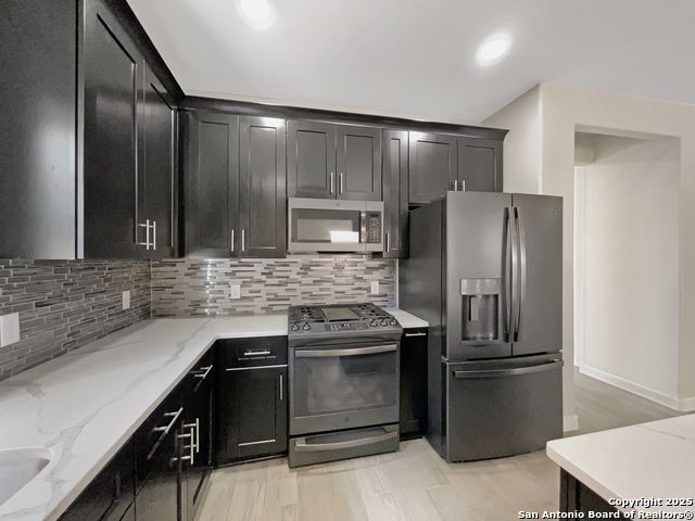Welcome to this beautifully updated home. The neutral color paint scheme and fresh interior paint provide a modern and inviting atmosphere. The living room features a cozy fireplace, perfect for relaxing evenings. The kitchen boasts a kitchen island and ample counter space, complemented by a stylish accent backsplash and all stainless steel appliances. The primary bathroom offers double sinks for convenience, while the primary bedroom features a spacious walk-in closet. Enjoy outdoor living with a covered patio and additionally storage shed in the fenced-in backyard. Recent updates include partial flooring replacement. This home is a perfect blend of comfort and style. Don't miss this opportunity to make this house your new home.This home has been virtually staged to illustrate its potential.. Home comes with a 100-Day Home Warranty and a 7-Day Home Test Drive to move in 7 days early for free.