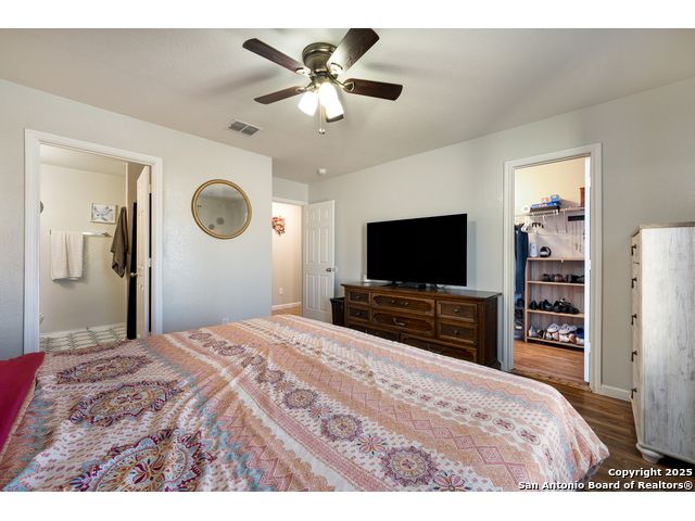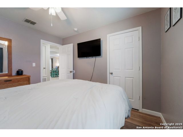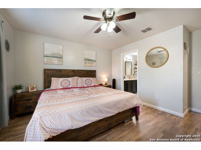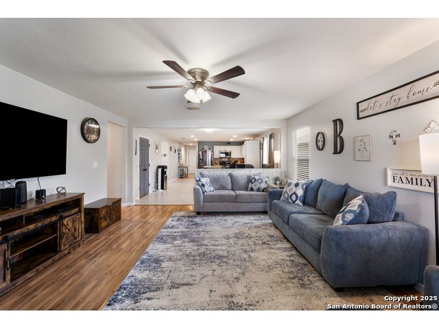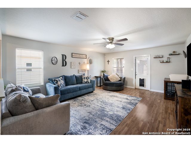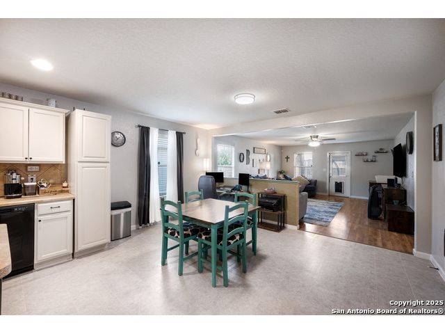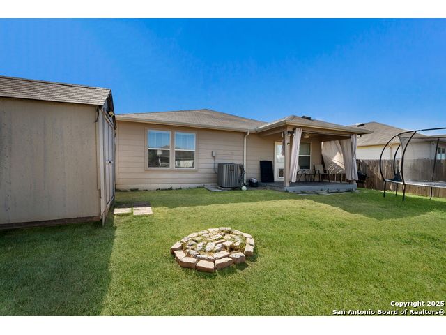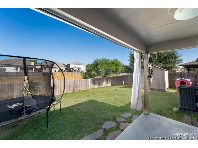 Pride of ownership truly shines in this well maintained, move-in-ready gem. Step inside and immediately notice the fresh interior paint throughout, giving the home a bright and inviting feel. The kitchen has been thoughtfully refreshed with newly painted cabinets, stylish updated flooring, and modern black stainless steel appliances, including a fridge, microwave, and stove (all just 3.5 years old) that convey with the sale. Recent upgrades continue in the bathrooms with updated flooring, updated light fixtures, and sleek modern faucets that bring a touch of contemporary elegance. The spacious primary suite offers a relaxing retreat, complete with a full bath and ample closet space. The open concept layout seamlessly connects the kitchen, dining, and living areas, making it perfect for both everyday living and entertaining. Need a flexible space for an office, playroom, or guest room? This home has you covered with a versatile bonus room! Enjoy year round comfort with the updated HVAC system installed in 2023. Outside, the backyard is perfect for gatherings with a covered patio and a spacious yard that also features a handy storage shed. Located directly across from Randolph Air Force Base, this home is a convenient commute with easy access to I-10, I-35, and Loop 410. It puts you just minutes from shopping, dining, HEB, the Forum, and Converse City Park. Plus, residents of Hanover Cove enjoy access to a neighborhood pool, perfect for those hot Texas summers! Don't miss your opportunity to own this stylish, updated home in a prime location, schedule your showing today and fall in love with everything it has to offer!