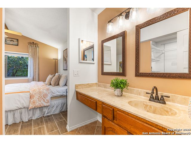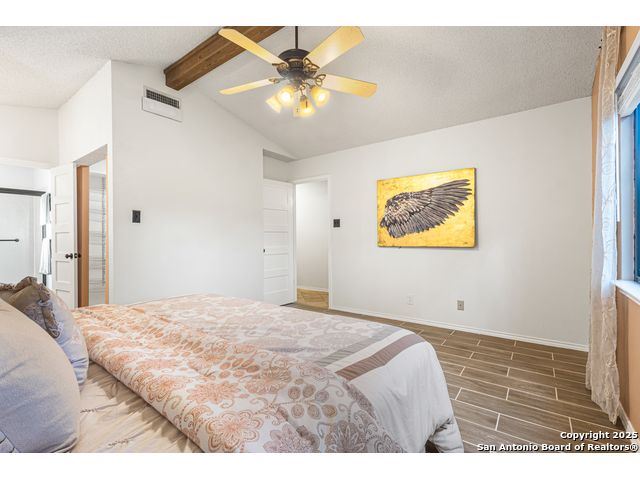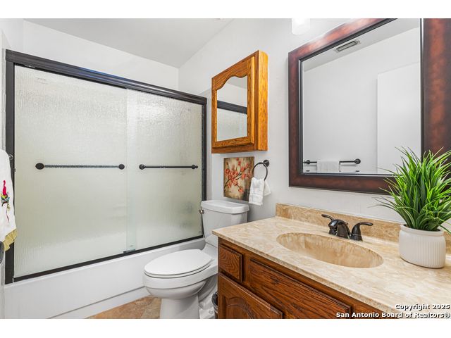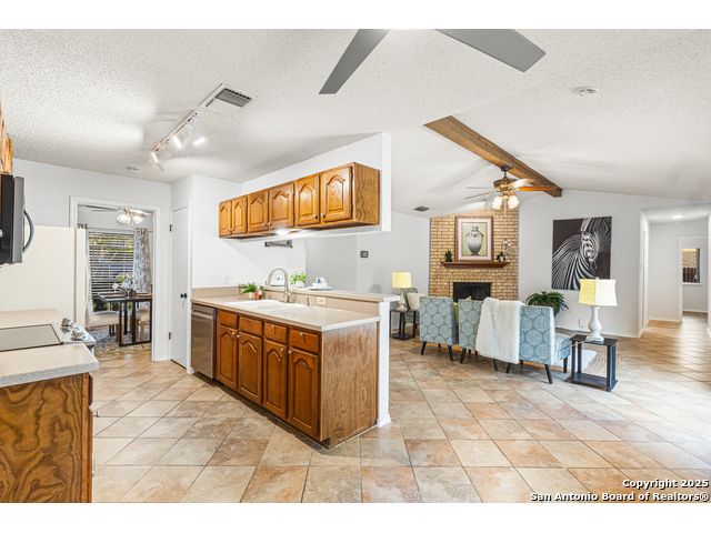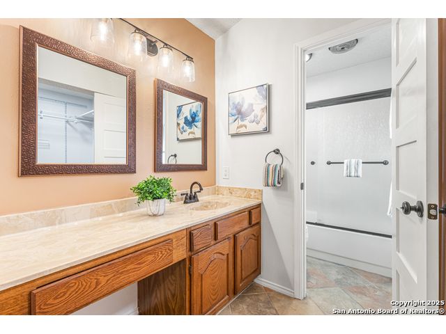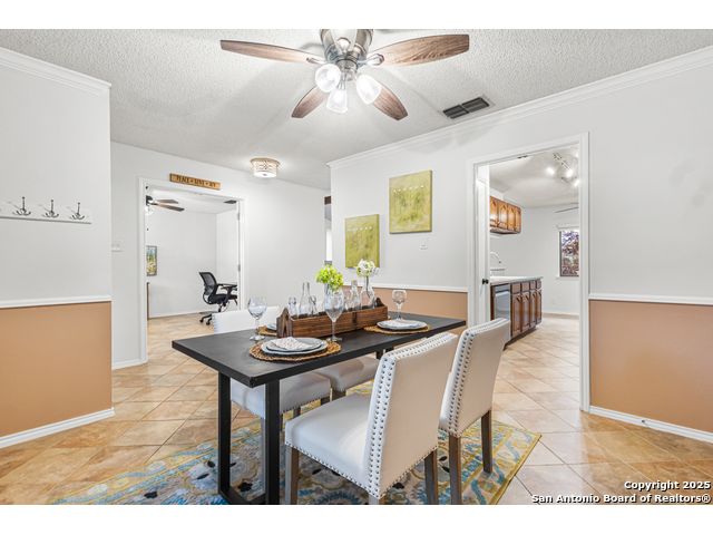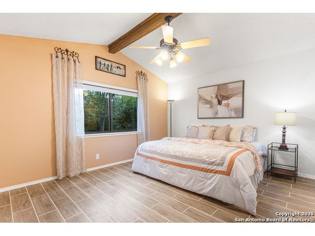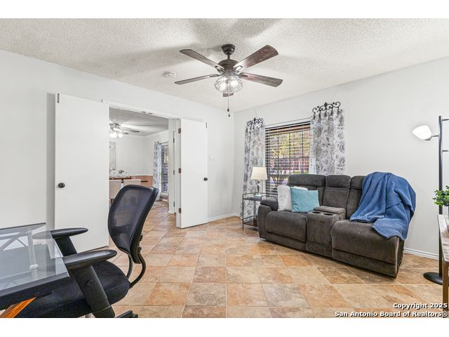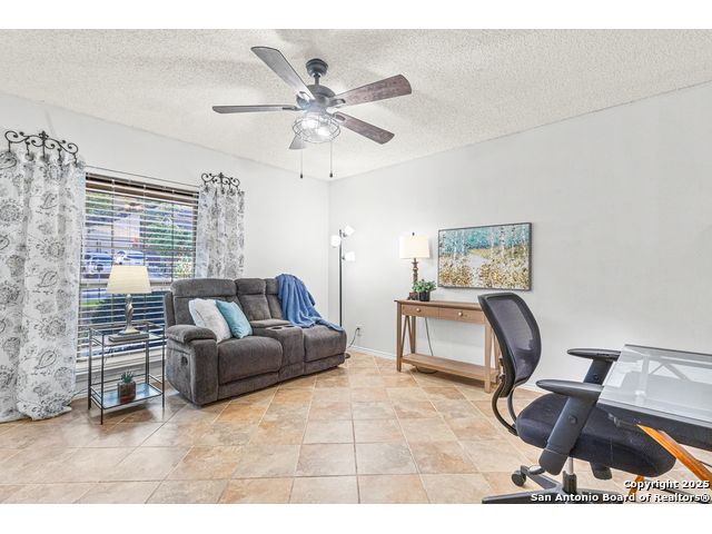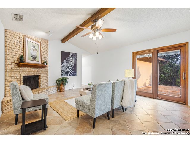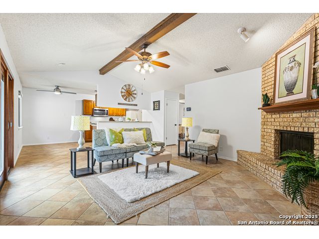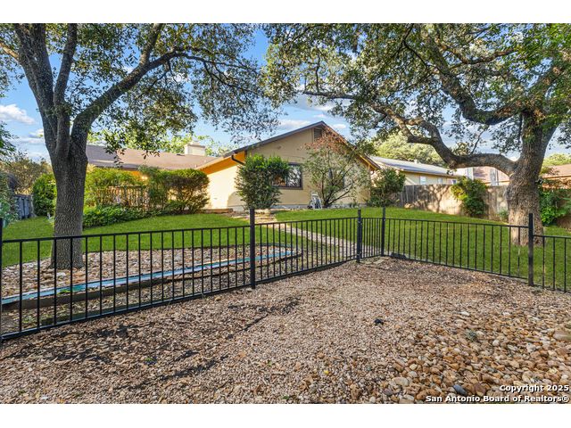 This may be THE ONE! Well cared for One Story, 4 Bedrooms with private 13x13 study, yes - that's right, 4 bedrooms and a separate study! What a find!! Plus a 5 minute walk to the community pool/ park/ and playground / sport courts amenities. Located in the sought after neighborhood of Encino Park and centrally located in the city. The home has new interior paint, stylish "wood-look" rectangular tile flooring in bedrooms, ceramic tile thru-out, no carpet, updated appliances, Pella sliding glass door with built in blinds, and newer blinds and windows. The separate dining room is great for dinner parties and the separate study offers privacy for working remotely or family members needing a quiet area; this room could also serve as a craft or game room. The open floorplan allows for family and guests to visit comfortably. The family room boasts an attractive brick fireplace and is the heart of the home! Charming kitchen is bright from natural light and comes complete with newer stove & microwave combo with ample countertops for food prep and storage space. The modern master suite is located to the back of the home for privacy. Outside take a rest from the busy world on the flagstone patio, indulge in Texas BBQ's. Greenbelt living at it's finest! Active HOA community offering a committee for all ages from holiday Egg Hunt to Music in the Park, Women's Club, and Pool parties & summer swim league. Come preview this home and you'll fall in love with THE ONE! Conveniently located to shopping, restaurants, medical, top rated NEISD schools and ease to catch local highways.