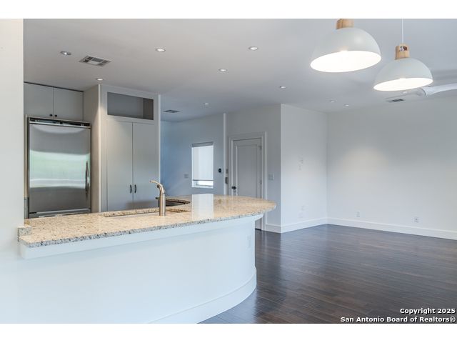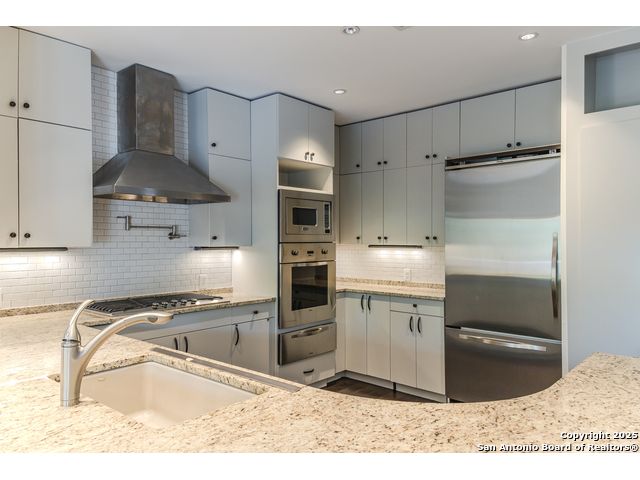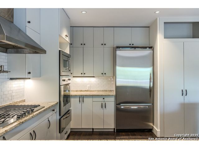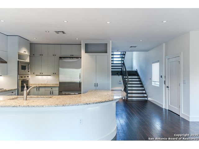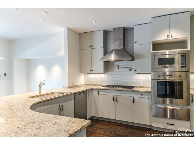 Experience elevated living in this stunning 3 bedroom, 3 bath condominium located in one of San Antonio's most sought-after and well established communities, Olmos Park. This beautifully designed, three story residence offers the perfect blend of sophistication, comfort, and convenience. Step inside your own private elevator to all three levels, offering effortless access to spacious living areas, designer finishes, and natural light throughout. The open-concept main floor features a gourmet kitchen with high end Viking appliances, sleek countertops and custom cabinetry, flowing seamlessly into the living and dining room space - perfect for both relaxing and entertaining. The Large Master suite offers a spa-like bathroom and walk-in closets. Enjoy the upscale details and thoughtfully curated finishes that reflect modern luxury.