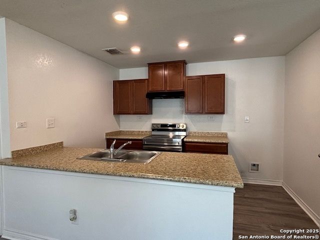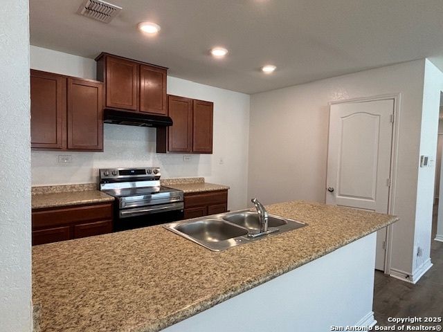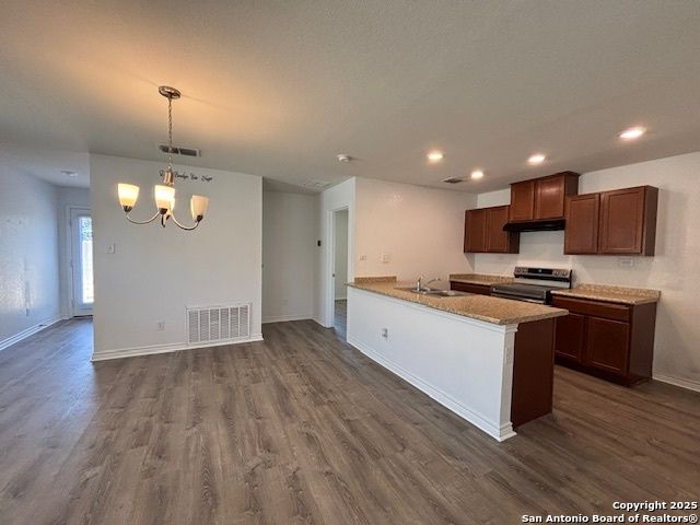 Welcome to this beautiful one-story home featuring 3 spacious bedrooms, 2 full bathrooms, and a two-car garage. This property offers a bright and inviting interior with a great open floor plan. Enjoy all-laminate flooring throughout, a seamless dining and living room combo, recessed lighting, and plenty of natural light streaming through large windows. The kitchen is designed for both functionality and style, boasting an island, pantry, and electric range-perfect for everyday cooking and entertaining. An additional flex room offers endless possibilities-use it as a formal dining room, home office, or game room to suit your lifestyle. Step outside to a generously sized backyard, ideal for outdoor gatherings, gardening, or simply relaxing in your private space.