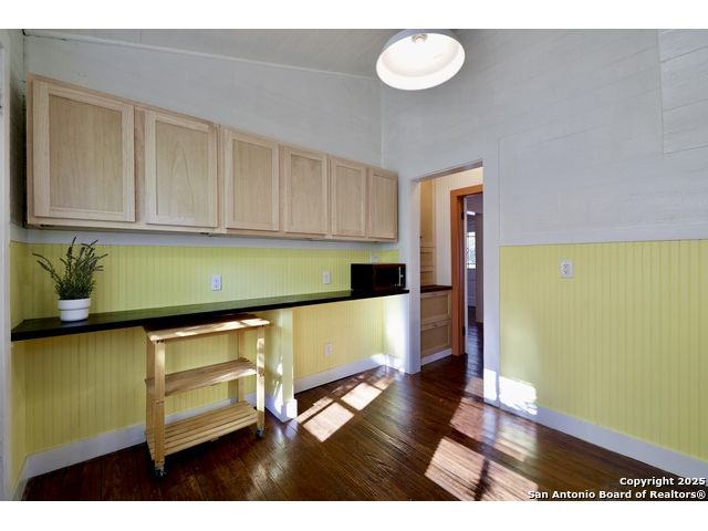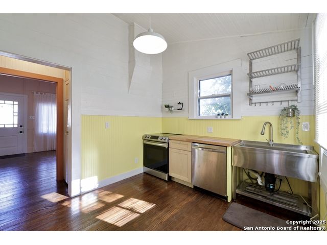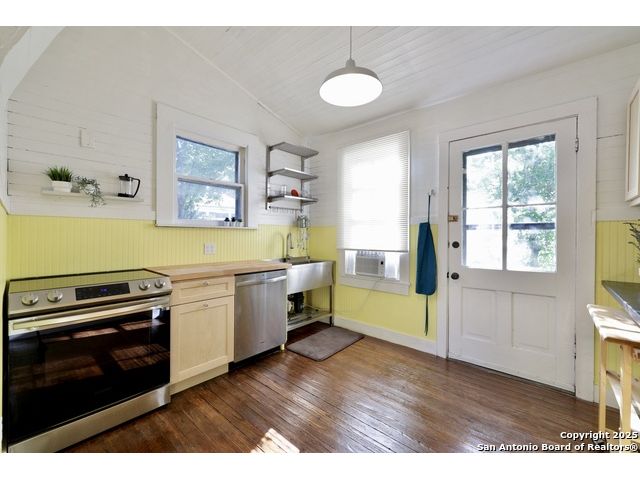 Square footage can be deceiving! Such is the case in this charming Lavaca/Southtown home located just blocks from beautiful Downtown San Antonio. Thanks to incredibly efficient finish and storage choices, this thoughtfully updated home feels much larger than its square footage suggests. Be sure to note the home's following attributes: * fabulous covered front porch spanning the entire front of the home (just needs a porch swing at each end!) * matching statement/vintage front doors * new standing seam/lifetime metal roof * new energy efficient mini split heating and cooling omits the need for space-sucking ducts and provides zone-specific heating and cooling, eliminating energy loss that occurs with traditional central AC systems, especially in smaller spaces * original hardwood floors, doors, and doorknobs throughout * 12' ceilings and plenty of windows allow for excellent light throughout the space * smart use of built-ins and nontraditional loft space provide efficient storage beyond what's standard in smaller homes * all appliances convey (stove/fridge/dishwasher/washer/dryer) * storage shed for laundry, gardening equipment, recreational items * fenced backyard provides nice space for garden/hangout time, and privacy/safety for people and pets Lovely neighbors abound in this downtown hood offering excellent access to great food, fabulous public art, King William Fair, Hemisfair, and downtown SA. Don't miss the opportunity to make this super sweet home and community yours. Thank you for your interest in this truly special home!