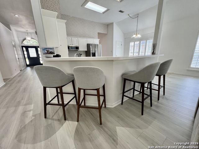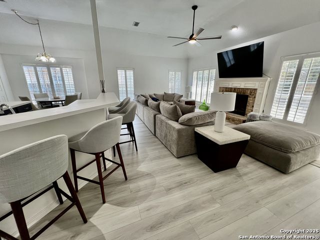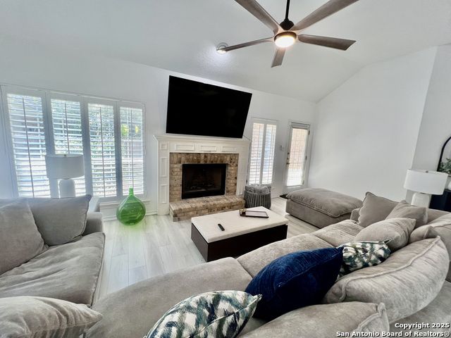 BEAUTIFUL one story home in the prestigious gated subdivision Hollow at Inwood, w/pool, tennis court, basketball court & playground. UPGRADES... NEW FULL INTERIOR PAINTING!!... INCLUDING WALLS & CEILINGS, KITCHEN CABINETS, MAIN DOOR, DINNING ROOM CABINETS. CARPETS GONE... NEW FLOORS !!, NEW CUSTOM SHUTTERS ON ALL WINDOWS !! NEW MICROWAVE, and more. Location, Location, Location, minutes away from 1604, LA CANTERA, THE RIM, FIESTA TEXAS, HEB, TARGET, WHOLEFOODS, LOWES. Great School District. This beautiful home is a rare gem, offering unparalleled comfort, style and convenience in a prime location.
