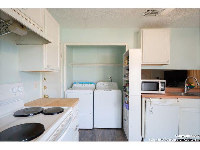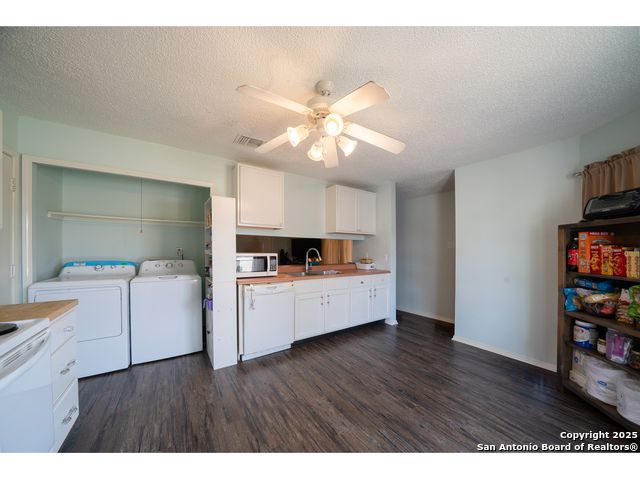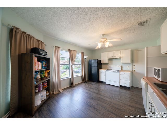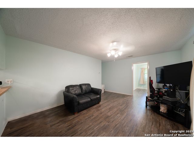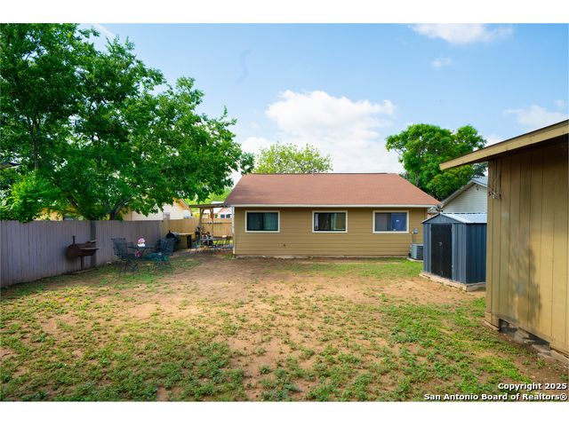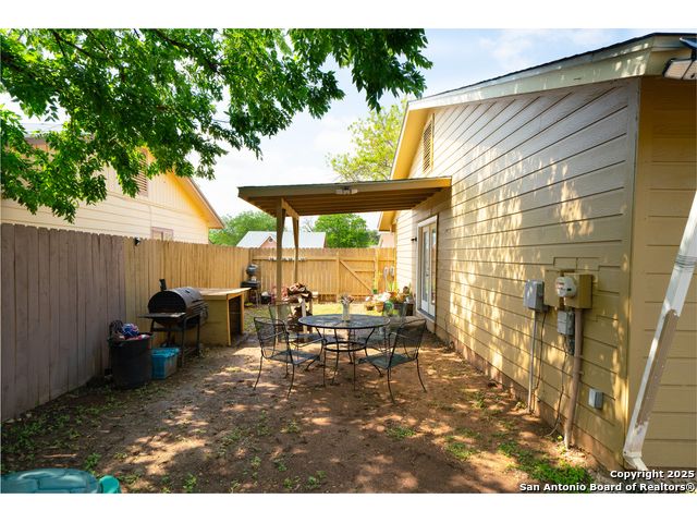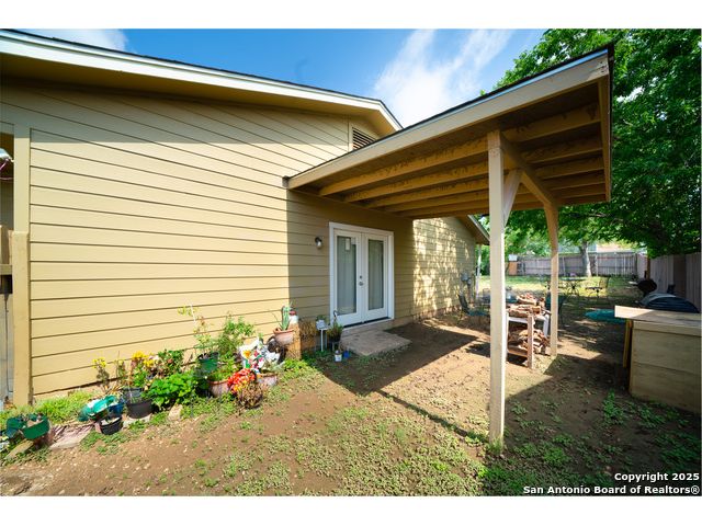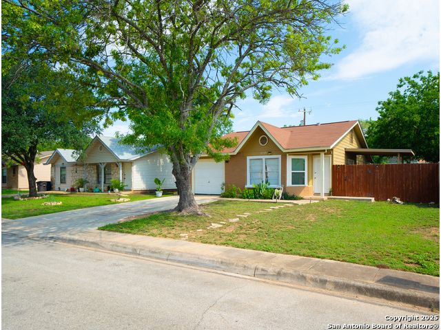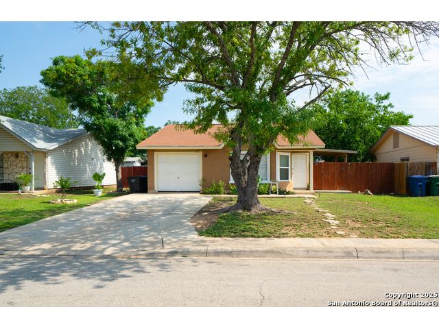 Discover this charming and well-maintained one-story home nestled in the desirable Hidden Meadows community. Comfort, Convenience, and Value-perfect for first-time buyers. Featuring original: 3 bedrooms and 1 bath. Now, Converted garage adding 200 sf that is used as a bedroom (10x8) and also includes a full bath (9x5) with a walk-in shower (Total house square footage approx. 1204) complemented by an AC wall unit in converted garage for year-round comfort. NO Carpet. Designed for effortless living, the spacious eat-in kitchen opens to a roomy living area, ideal for entertaining or relaxation. Stylish wood-look laminate flooring adds warmth and character throughout. Step through the double French doors onto the covered patio (10x8) a perfect spot to enjoy outdoor gatherings. The large backyard, enclosed by a privacy fence, provides a secure setting for entertaining, along with two sheds for extra storage. For enhanced energy efficiency, extra insulation has been added to the attic, improving AC and heating performance. Conveniently located to shopping near Culebra and Loop 1604, this home offers easy access to NW Vista College, SeaWorld, and Highway 151. Set your appointment today to tour this startup home!