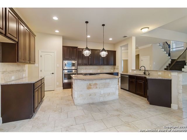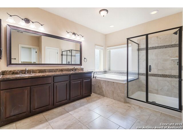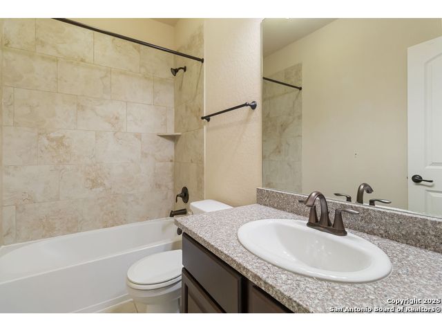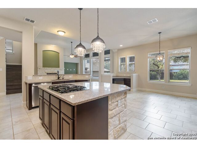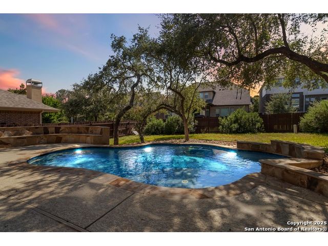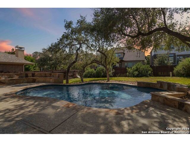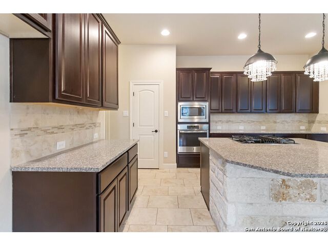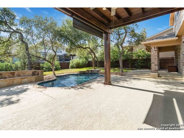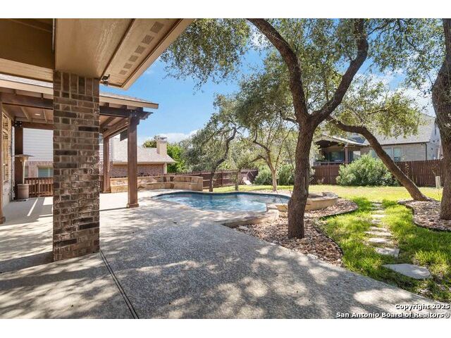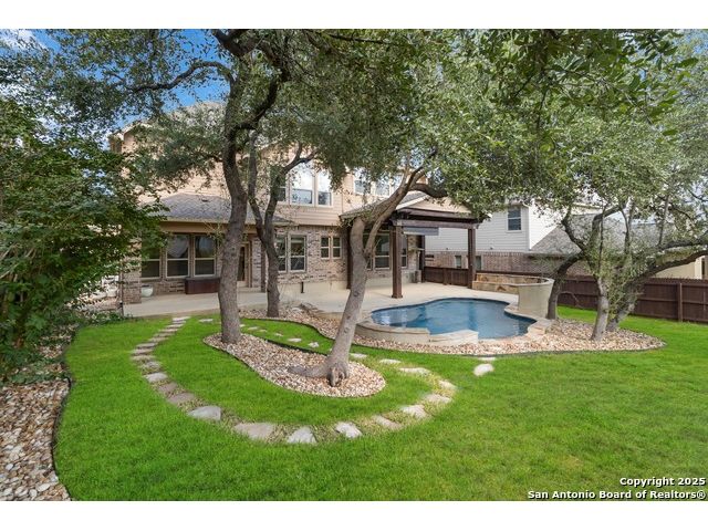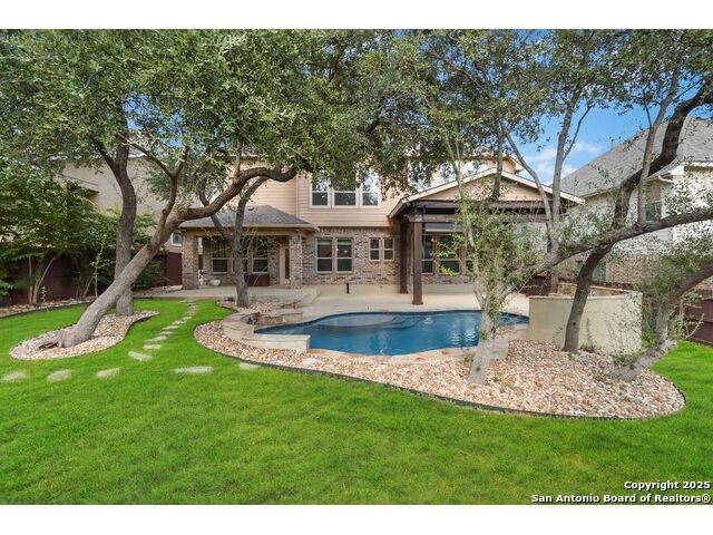 Exquisite Home with Pool, Theater, and Upgrades in Terra Bella - Reagan HS! Welcome to this stunning 5 bedroom, 4.5 bath home located in the highly sought-after Terra Bella community, feeding into Reagan High School. The spacious open-concept floor plan welcomes you with high ceilings, abundant natural light, and a seamless flow perfect for everyday living and entertaining. The living room features a stone fireplace, custom alcoves, and built-in media cabinetry, while the adjacent entryway showcases iron stair railings, tile floors, and a designated home office or study. You'll be captivated by the oversized kitchen, enhanced by pendant lighting, surrounded by granite countertops, generous cabinetry and drawers, and a gas cooktop with built-in oven and a breakfast area! The extra large primary suite offers a tranquil retreat with tons of natural lighting and the primary bathroom features a separate garden tub and shower, double vanity, and a large walk-in closet. Entertain or unwind in the oversized theater room, complete with Epson sound and projection system. The home also has a separate flex room to use as a home gym, playroom or gameroom. The large backyard is truly an oasis, complete with a covered patio with drop-down shades, a sparkling pool, and several dining and lounging areas surrounded by mature trees offering plenty of shade. Additional highlights include a brand-new roof, new dishwasher, and a fully equipped theater system with projector and surround sound. The home features tile and hardwood flooring throughout-carpet in the media room only, offering both style and easy maintenance. Situated in a gated community with controlled access, you'll enjoy added peace of mind. Conveniently located just minutes from shopping, dining, and major highways, this home offers the perfect blend of luxury and accessibility. Don't miss your chance to own this move-in-ready home in the highly desirable Terra Bella community-schedule your private showing today!