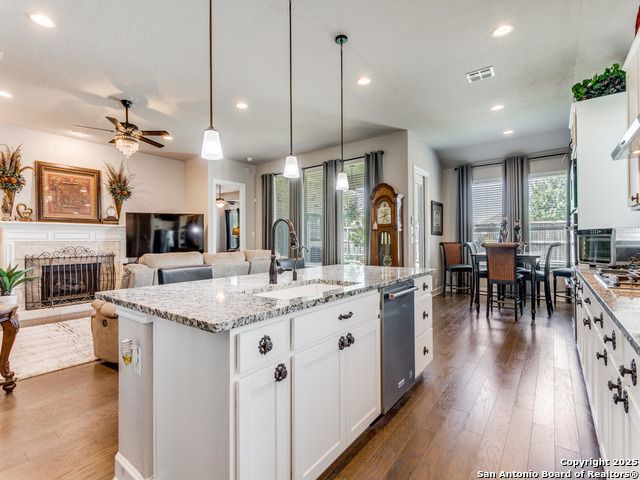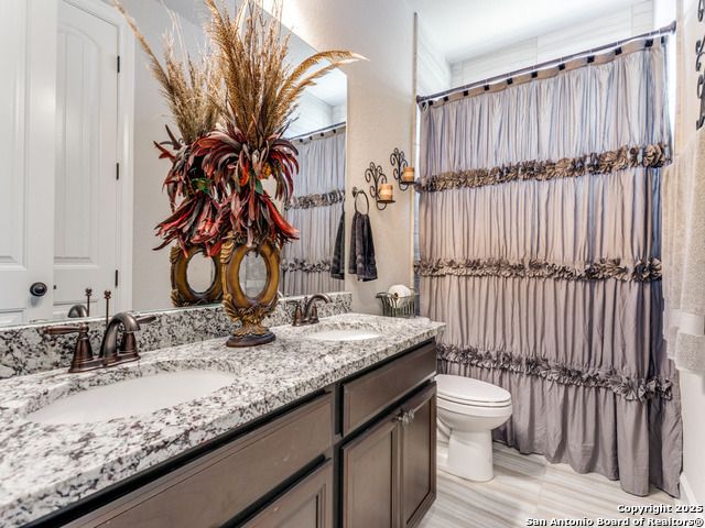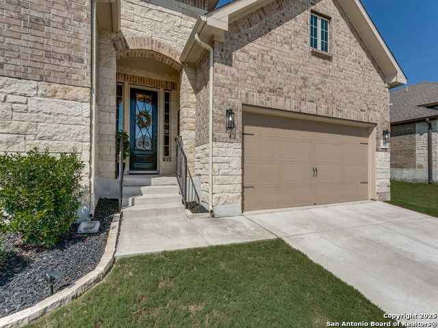 Welcome to this stunning single-story brick and stone home in the highly desirable Kinder Ranch community. Just minutes from Pieper High School and Middle School which are top-rated schools, this home offers comfort and convenience in one package. Inside, you'll find a spacious open layout with wood flooring, a cozy stone fireplace, and a large island kitchen featuring Kitchen Aid stainless appliances, gas cooking, a breakfast bar, and plenty of space for gatherings. The dedicated office can also serve as a 4th bedroom, giving you flexibility for your needs. The master suite is a retreat with a walk-in shower and a $16K hydrotherapy tub offering massage and aromatherapy. Step outside to a beautifully landscaped backyard with a covered patio - perfect for entertaining or quiet evenings under the stars. Move-in ready with upgrades throughout, this home is ready to impress. Please go to additional information for all the improvements and upgrades.