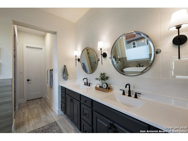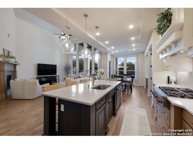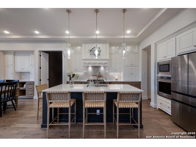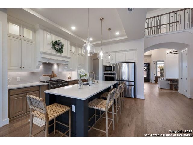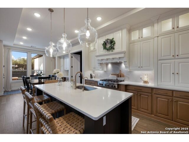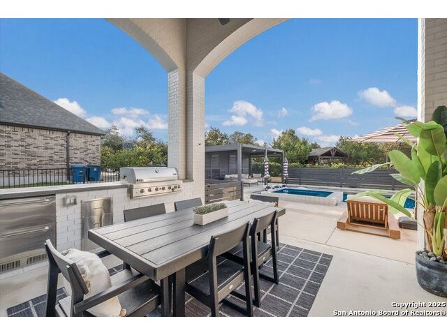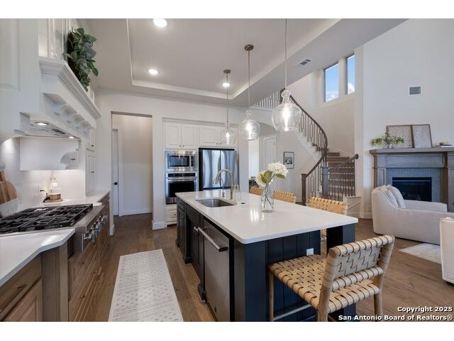 Welcome to 2119 Kerrisdale, a stunning 5-bedroom, 4.5-bathroom home nestled in the prestigious Royal Oaks Estates. This elegant property perfectly combines modern luxury with timeless design, offering a spacious and inviting retreat for everyday living and entertaining. Step inside and be greeted by soaring ceilings, expansive windows, and an open-concept layout that fills the home with natural light. The chef's kitchen features sleek quartz countertops, custom cabinetry, stainless steel appliances, a large island, and designer pendant lighting-seamlessly connecting to the dining and living areas. A dedicated home office with custom built-ins and a stylish accent wall creates the perfect space for productivity. The primary suite is a true sanctuary with a dramatic feature wall, sitting area, and a spa-like ensuite complete with dual vanities, soaking tub, and oversized shower. An additional downstairs bedroom with its own full bath provides the perfect option for guests, multigenerational living, or a private retreat. Upstairs, multiple bedrooms and living areas provide flexibility for family and guests alike. Step outside to your private backyard paradise: a covered patio with a full outdoor kitchen, dining area, and cozy lounge space. Enjoy the sparkling pool with integrated spa, sun deck, and shaded cabana-perfect for relaxing or entertaining. Additional highlights include: 3-car garage with ample storage Designer fixtures and finishes throughout Spacious secondary bedrooms with walk-in closets Extra storage cabinets in utility Prime location in a gated community close to top-rated schools, shopping, and dining This home is move-in ready and designed for both comfort and luxury living.