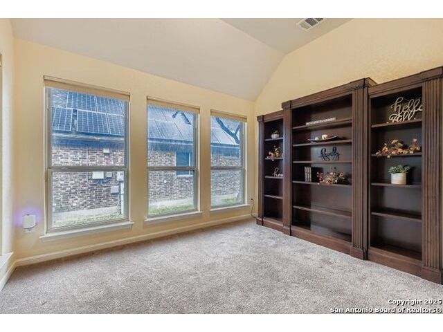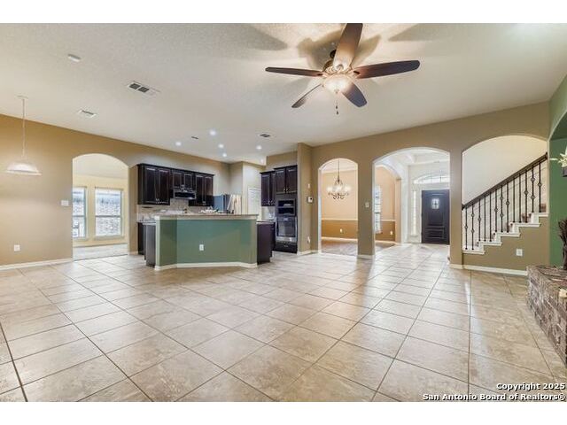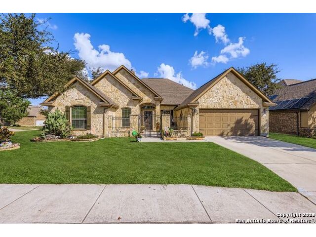Welcome to 11523 Camp Real Ln, a beautifully maintained 3,350 sq. ft. home set on a serene corner lot with mature trees-including fruit trees, gorgeous landscaping, and a private courtyard entrance. Whole house exterior lighting. Designed for both comfort and versatility, this property offers 4 bedrooms, 2.5 baths, a 3-car tandem garage, a dedicated office, flexible bonus space, and an upstairs game/media room with its own half bath. Inside, the open layout is filled with natural light and enhanced by crown molding and a cozy brick fireplace. The chef's kitchen features granite countertops, stainless steel appliances, a raised breakfast bar, pantry, and sunny breakfast nook, while a formal dining room and screened porch with extended deck make entertaining effortless. The main-floor primary suite overlooks the backyard and includes a spa-inspired bath with a jacuzzi tub, a walk-in shower, dual vanities, and a spacious California closet. Located within Northside ISD and just minutes from Hoffmann Elementary, Briscoe Middle, and Taft High School, this property also offers easy access to parks, shopping, and entertainment. Enjoy nearby Phil Hardberger Park and O.P. Schnabel Park, shopping at Alamo Quarry Market, North Star Mall and La Cantera Shopping, and look forward to new destinations such as Borgfeld Crossing, Alamo Commons, and the Santikos Entertainment expansion. This home truly blends comfort, convenience, and community-a must-see opportunity in one of San Antonio's most desirable areas!