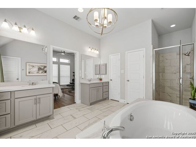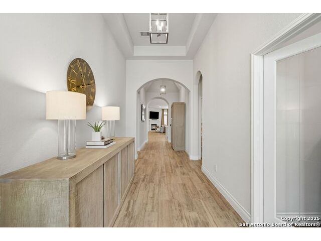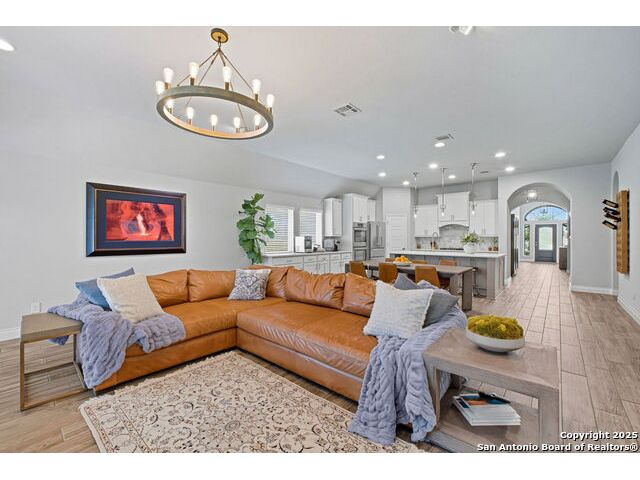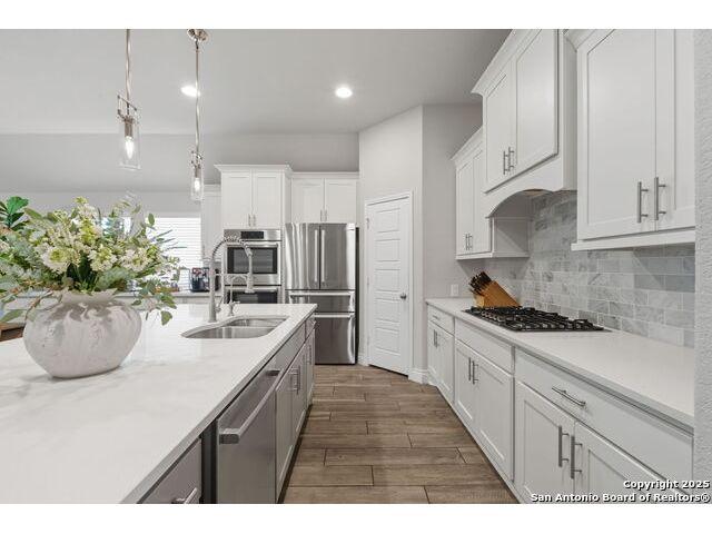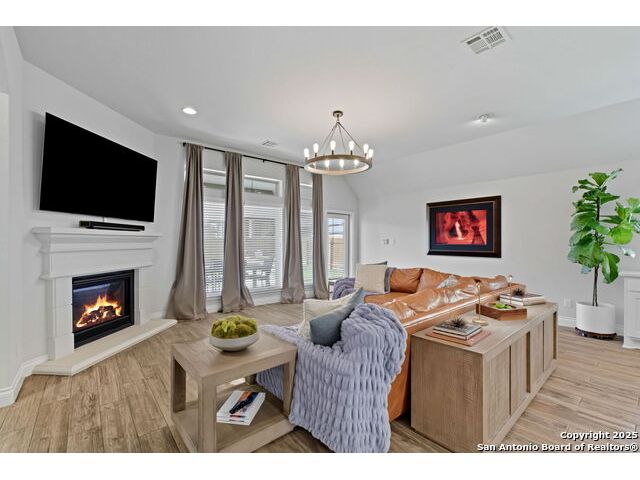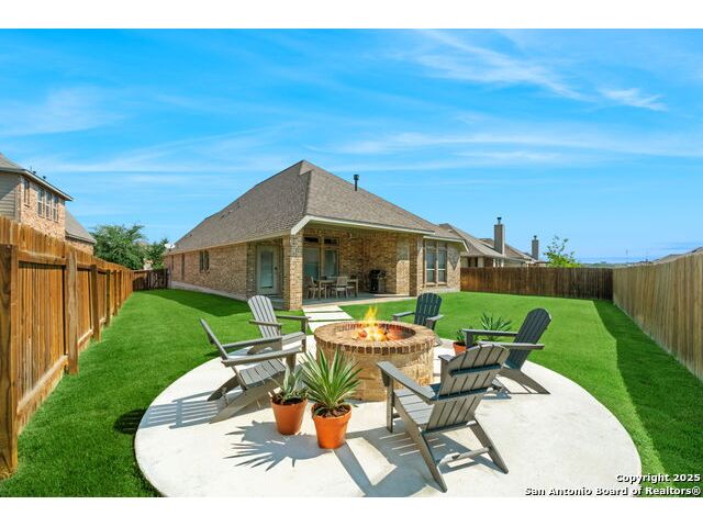 ASSUMABLE VA LOAN AVAILABLE AT 2.25 PERCENT INTEREST RATE WITH APPROVED BUYER Welcome to this thoughtfully designed single-story home located inside the gated community of Balcones Creek in Boerne. The open-concept layout features soaring ceilings, upgraded floors and lighting, and a flexible dedicated office (or gym-see pictures). At the heart of the home, the expansive living area flows seamlessly into the gourmet kitchen and dining spaces-perfect for entertaining or everyday living. The spacious primary suite includes a spa-like bath and dual walk-in closets and one of the secondary bedrooms incudes its own private en-suite bath making it ideal for guests or family members. Step outside to an inviting covered patio with an elevated fire pit, while the side yard offers raised garden beds providing a retreat with room to grow. Balcones Creek residents enjoy resort-style amenities including a sparkling pool, clubhouse, walking trails, and parks. The neighborhood blends the peaceful charm of the Hill Country with convenient access to Boerne ISD schools, boutique shopping and dining in Downtown Boerne, the brand-new HEB, and a quick commute to San Antonio via I-10. Included: Tesla Gen 3 Wall Charger delivering up to 44 miles of range per hour at 11.5 kW-50 percent faster than a standard mobile connector.