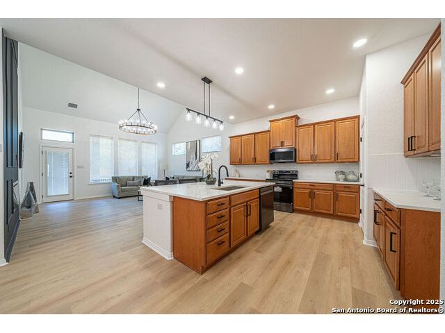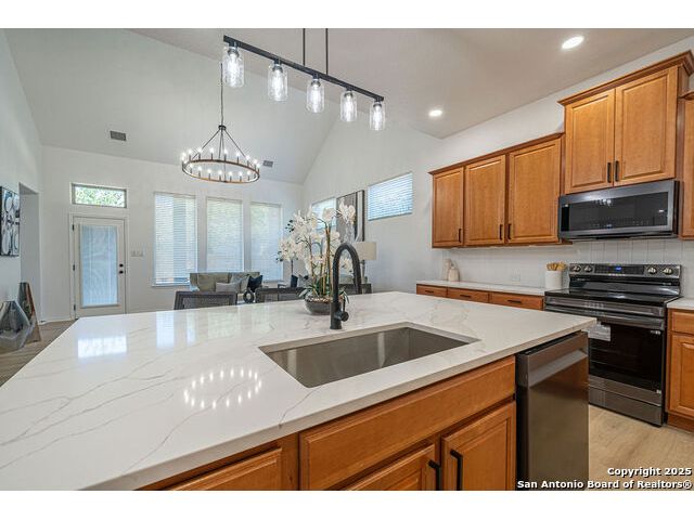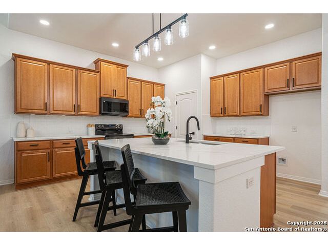 **9923 Jon Boat Way - Balcones Creek, Boerne, TX** Welcome to this beautifully designed 4-bedroom, 3.5-bath home tucked inside the sought-after, gated community of Balcones Creek. Built in 2014 and thoughtfully updated, this 2,797 sq. ft. residence blends modern upgrades with timeless style, offering a warm and inviting space for everyday living and entertaining. Step inside and you'll be greeted by soaring ceilings, an open floor plan, and architectural accent walls that add character throughout. The main living areas feature luxury vinyl plank flooring, while the upstairs game room and guest bedrooms provide cozy comfort with carpet. The chef's kitchen is a true highlight, showcasing quartz countertops, neutral cabinetry, a large island with custom lighting, walk-in pantry, and brand-new black stainless steel appliances. The spacious primary suite offers a relaxing retreat with a bay window and spa-like bathroom complete with a standalone soaking tub, seamless glass shower, double vanities with quartz counters, and a generous walk-in closet. Upstairs, you'll find additional large bedrooms and a versatile game room for family fun or quiet downtime. Enjoy outdoor living year-round with both a covered front porch and a covered back patio, perfect for morning coffee or evening gatherings. The stone and brick exterior provides lasting curb appeal and a welcoming first impression. Living in Balcones Creek means access to top-notch amenities including a community pool, clubhouse, jogging trails, park, and playground. The location couldn't be more convenient-just minutes from the new HEB, within the acclaimed Boerne ISD, and only a short drive to shopping, dining, and entertainment. This home is the perfect blend of comfort, style, and community-ready to welcome its next owners.