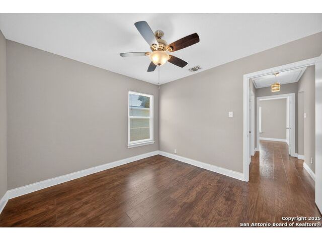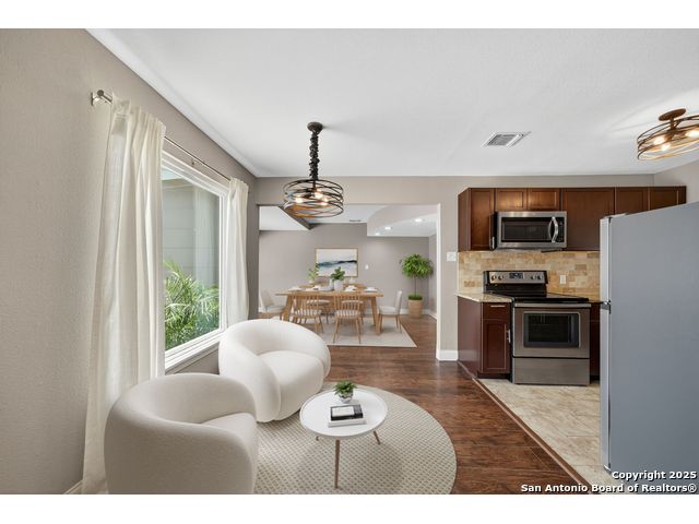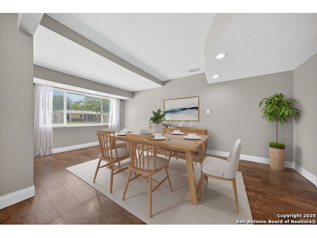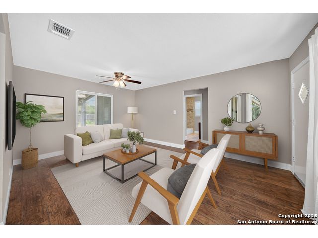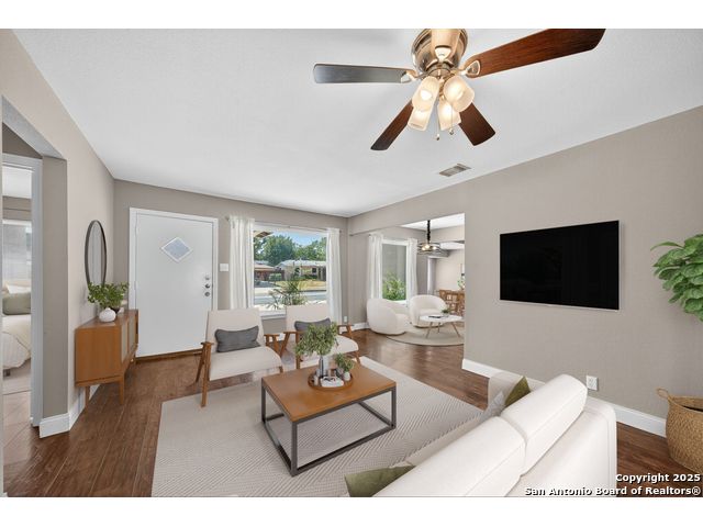 MAJOR * PRICE * IMPROVEMENT! Charming 1-Story Home in the centrally located Dellview community! Step inside to see gorgeous laminate wood floors and a freshly painted interior that feels light and inviting. The beautifully updated kitchen features granite countertops and flows seamlessly into the open-concept living and dining area. With an added wall the large dining space could become a 3rd bedroom! Enjoy the convenience of rear alley access, plus a large city park with playground, pool, and pavilion easily accessed through your back gate. Centrally located near Downtown San Antonio, IH-10, and 410, and walking distance to Dellview Elementary! This is an unbeatable location!