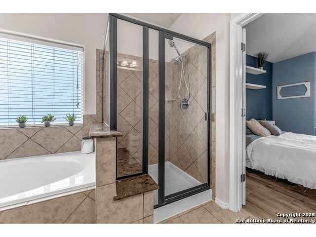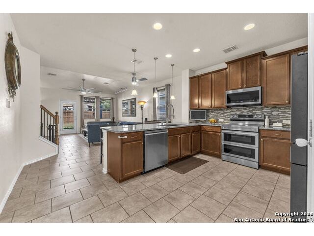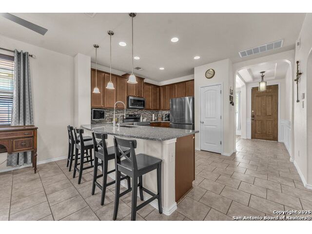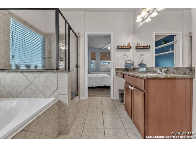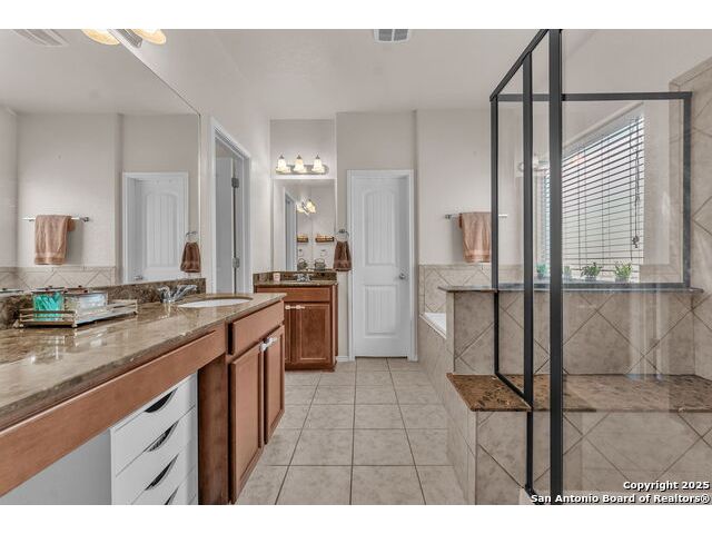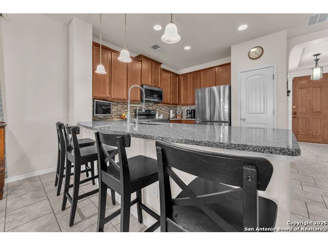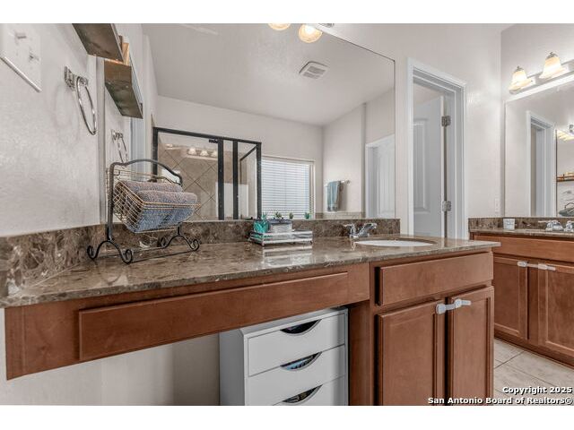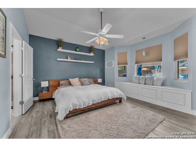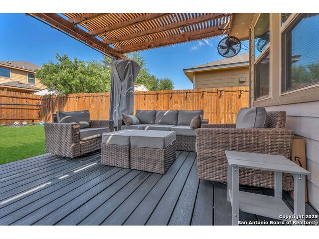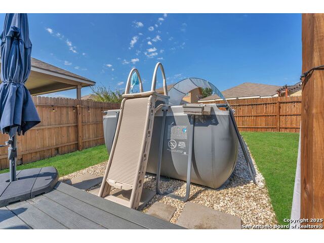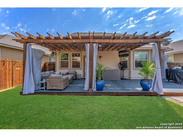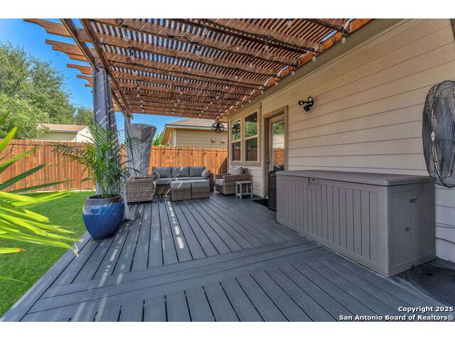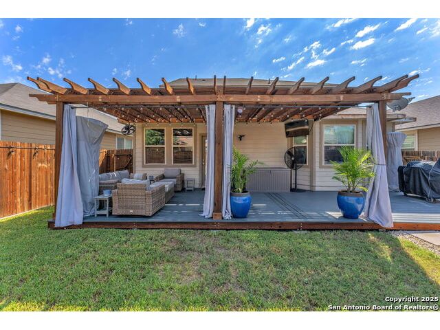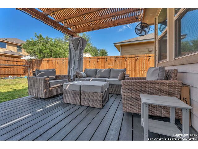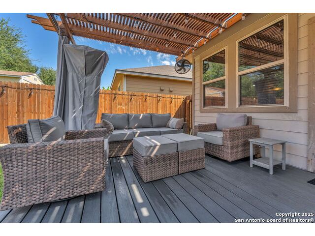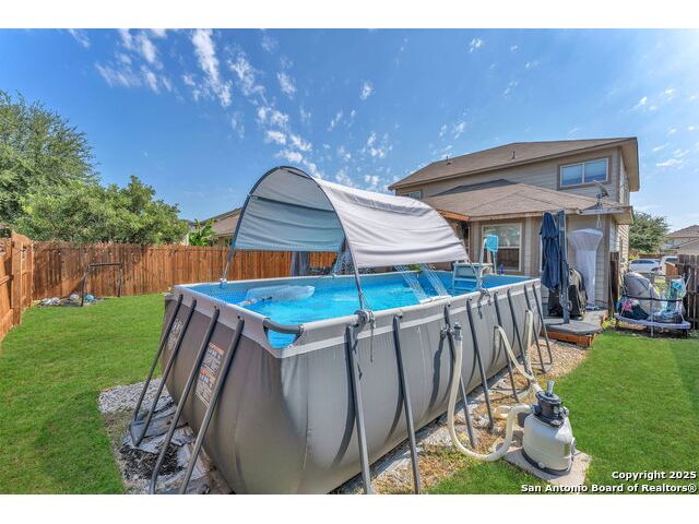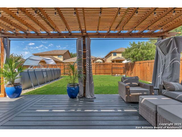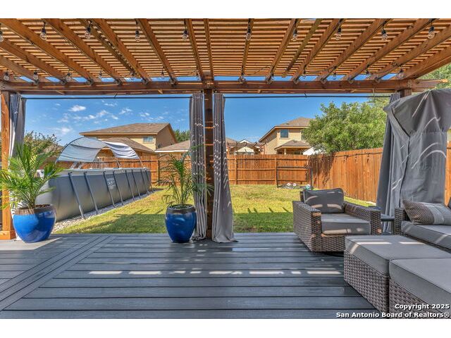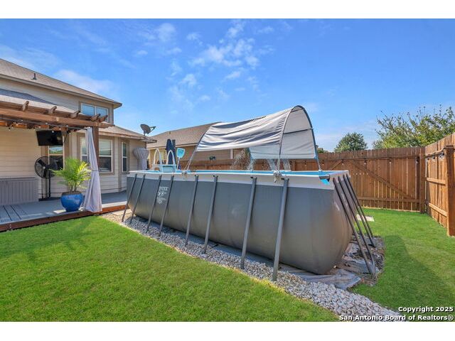 This beautifully maintained 4 bedroom, 2.5 bath home conveniently located in the charming neighborhood of Champions Park near 1604 is ready to make your own! This home boasts numerous custom updates, including an elegant dining space, granite countertops, and tile flooring. The primary suite features custom built-in bench for comfort and style. Enjoy the outdoor living space with Pergo decking, a pergola plus a sparkling above ground pool for year round fun. Inside, you'll find a dedicated media room for movie nights or entertaining. With thoughtful details throughout and a warm, inviting feel, this home is truly move in ready!