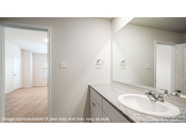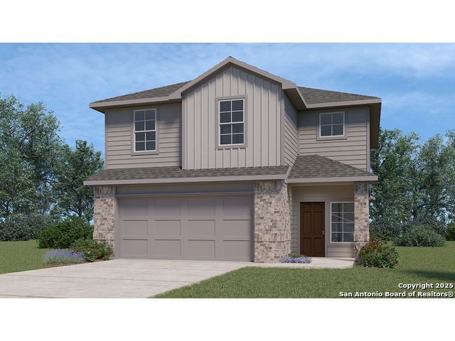 Welcome to The Emma, a two-story home located in Applewood in San Antonio, TX. This floor plan offers 2 classic exteriors, 2-car garage, and a full yard landscaping and irrigation package, ensuring that your home looks it's best every single day. Inside this 3 bedroom, 2.5 bathroom home, you'll find 1700 square feet of living space. The entry opens to grand family room before flowing into the kitchen and dining area with an open floorplan concept. The gourmet kitchen includes granite counter tops, shaker style cabinetry, stainless steel appliances, large breakfast island, and spacious pantry. Head up the stairs to find the main bedroom suite, all secondary bedrooms, the laundry room, and a second full bath. The Emma layout is perfect if you love entertaining downstairs and relaxing upstairs. The private main bedroom features an attractive ensuite with plenty of shelving space and shaker style cabinetry. A spacious tiled walk-in shower, separate door for your toilet, and large walk-in closet provide all the space and convenience you need. Additional features of The Emma floor plan include sheet vinyl flooring in entry, living room, and all wet areas, granite bathroom countertops, and a covered back patio (per plan). This home includes our HOME IS CONNECTED base package. Using one central hub that talks to all the devices in your home, you can control the lights, thermostat and locks, all from your cellular device.