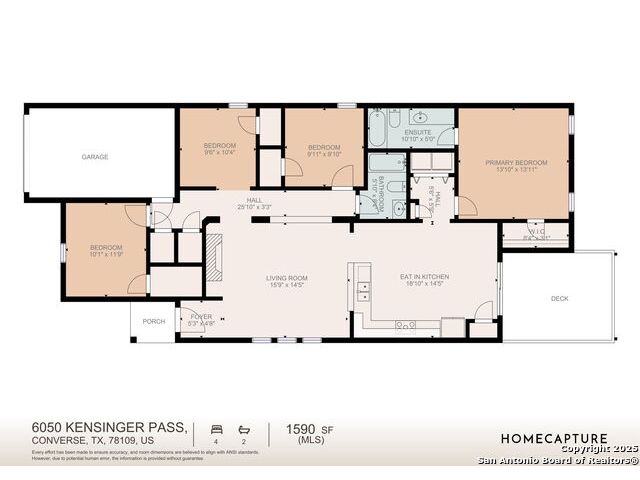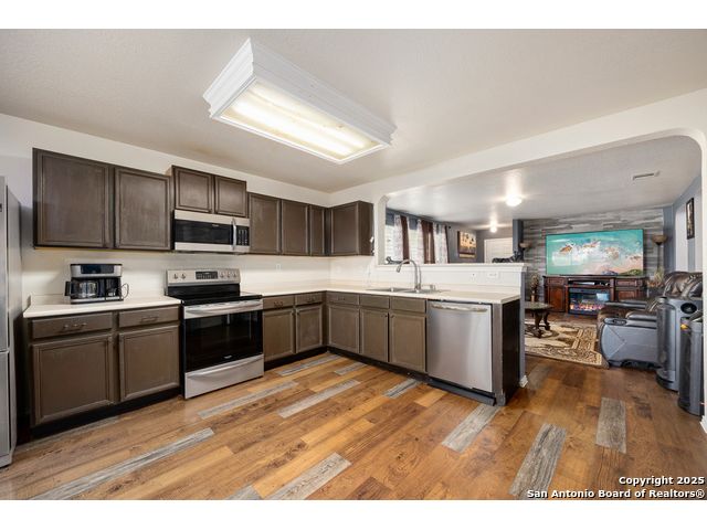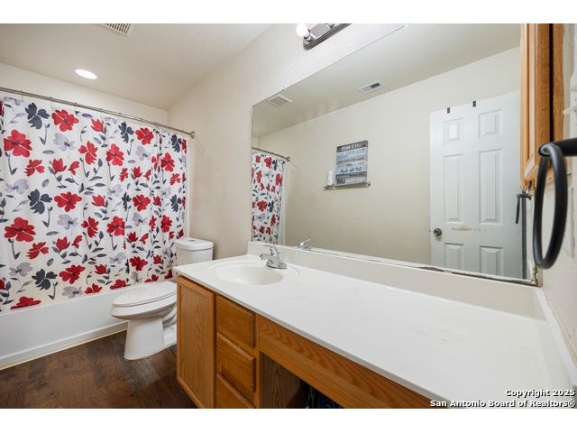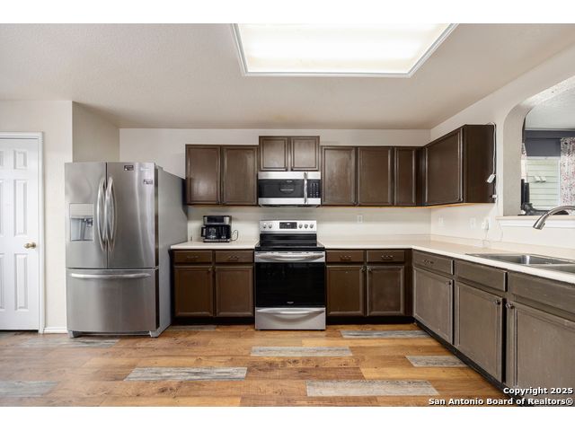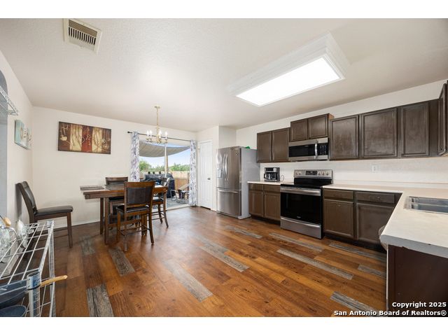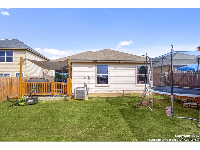 Charming 1-story home located in the community of Dover. The open concept floor plan is filled with natural light and backs to a peaceful greenbelt, offering a sense of privacy. The spacious living room flows into a large eat-in kitchen that includes a convenient pass-through to the living area, making it easy to stay connected while preparing meals. A dedicated home office provides flexibility and could also be used as a fourth bedroom. Throughout the home, ample storage helps keep everything organized. The split primary suite offers extra privacy, while the secondary bedrooms are comfortable and versatile. Outside, the backyard features a patio, privacy fence, and greenbelt views-perfect for relaxing or entertaining. Located in a quiet neighborhood with a large park nearby, this home is just minutes from shopping, dining, and major highways including 1604 and I-10, with an easy commute to Randolph or SAMC. Schedule your personal tour today and see all this home has to offer.