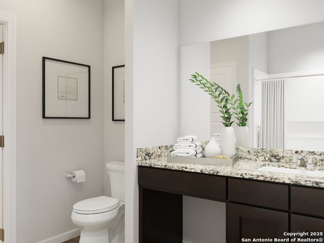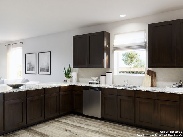 Love where you live in Hunters Ranch in San Antonio, TX! The Redbud floor plan is a spacious two-story home with 5 bedrooms, 2.5 baths, a game room, and 3-car garage. This home has it all, including vinyl plank flooring throughout the common areas! The gourmet kitchen is sure to please with 42" cabinets, granite countertops, and stainless-steel appliances! You'll love the optional kitchen layout with a center island! Retreat to the first-floor Owner's Suite featuring double sinks with granite countertops, a separate tub and shower, and a walk-in closet! Enjoy the great outdoors with a covered patio and no back neighbors! Don't miss your opportunity to call Hunters Ranch home, schedule a visit today!