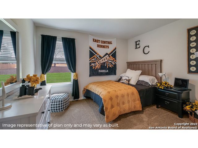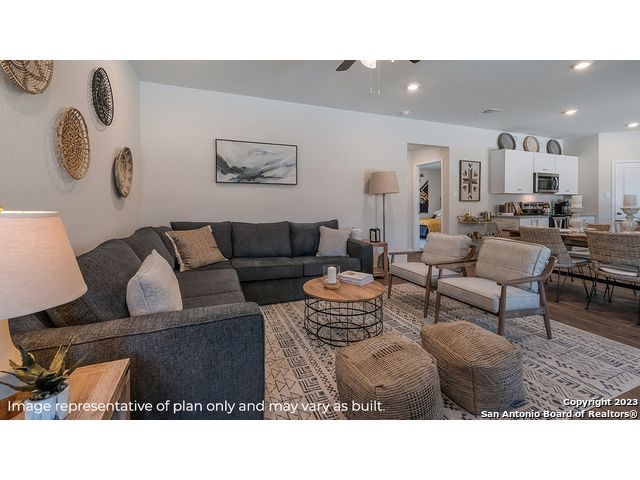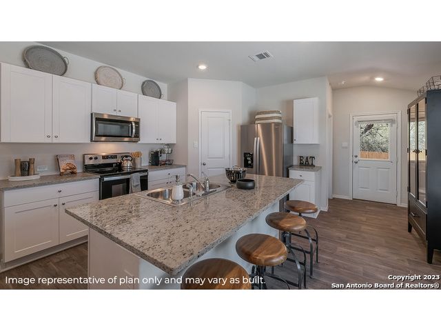 The Diana plan is a one-story home offered in Redbird Ranch in San Antonio, TX. Featuring 2 classic front exteriors, 3 bedrooms, 2 baths, 2-car garage and 1535 square feet of living space, this floor plan is sure to turn heads. Comfort greets you at the door with a long foyer leading to a combined living and dining area, then flowing into the grand corner kitchen. The kitchen includes a breakfast bar with beautiful quartz counter tops, stainless steel appliances, shaker style cabinetry and a corner pantry with built-in shelving. Your blended family room and dining area feature quality sheet vinyl flooring and plenty of windows, creating a light and bright space for living and entertaining. The main bedroom is located at the back of the home and has its own attached bathroom that offers a separate water closet, tiled walk-in shower and spacious walk-in closet. All secondary bedrooms offer quality carpeted floors and a closet. These rooms are versatile. Use them as bedrooms, offices, work out rooms or other bonus spaces. The Diana floor plan also includes quartz countertops in all bathrooms, full yard landscaping and irrigation, and our HOME IS CONNECTED base package. Using one central hub that talks to all the devices in your home, you can control the lights, thermostat and locks, all from your cellular device.