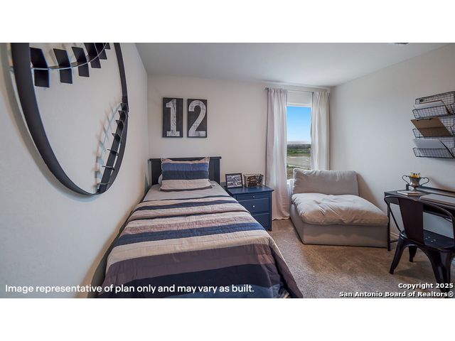 Welcome to The Kate floor plan, a two-story home located in Redbird Ranch in San Antonio, TX. This home features 2 classic front exteriors, 4 bedrooms, 2.5 baths, a spacious 2-car garage and 2223 square feet of living space. An arched, covered patio (per plan) opens to the gourmet kitchen which includes quartz counter tops, stainless steel appliances and shaker style cabinets. The Kate is an open concept floorplan with the kitchen island overlooking a dining nook and living room so you'll never miss a moment. This home is unique in that all bedrooms are located upstairs, along with a loft and utility room. If entertaining downstairs and maintaining a private retreat upstairs is your goal, this floor plan is the one for you. The main bedroom has its own attractive ensuite bathroom that features a walk-in closet and all the space you need to get ready in the morning. You'll love a quartz single vanity sink, shaker style cabinetry, a tiled walk-in shower, and a separate water closet for the toilet. Your secondary bedrooms all have quality carpet flooring, large windows and closets. Whether these rooms become bedrooms, office spaces, or other bonus rooms, functionality is key. Additional features include sheet vinyl flooring in entry, living room, and all wet areas, quartz counter tops in all bathrooms, and full yard landscaping and irrigation. This home includes our HOME IS CONNECTED base package. Using one central hub that talks to all the devices in your home, you can control the lights, thermostat and locks, all from your cellular device.