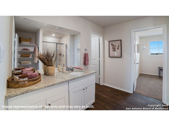 Welcome to The Kate floor plan, a two-story home located in Redbird Ranch in San Antonio, TX. This home features 2 classic front exteriors, 4 bedrooms, 2.5 baths, a spacious 2-car garage and 2223 square feet of living space. An arched, covered patio (per plan) opens to the gourmet kitchen which includes quartz counter tops, stainless steel appliances and shaker style cabinets. The Kate is an open concept floorplan with the kitchen island overlooking a dining nook and living room so you'll never miss a moment. This home is unique in that all bedrooms are located upstairs, along with a loft and utility room. If entertaining downstairs and maintaining a private retreat upstairs is your goal, this floor plan is the one for you. The main bedroom has its own attractive ensuite bathroom that features a walk-in closet and all the space you need to get ready in the morning. You'll love a quartz single vanity sink, shaker style cabinetry, a tiled walk-in shower, and a separate water closet for the toilet. Your secondary bedrooms all have quality carpet flooring, large windows and closets. Whether these rooms become bedrooms, office spaces, or other bonus rooms, functionality is key. Additional features include sheet vinyl flooring in entry, living room, and all wet areas, quartz counter tops in all bathrooms, and full yard landscaping and irrigation. This home includes our HOME IS CONNECTED base package. Using one central hub that talks to all the devices in your home, you can control the lights, thermostat and locks, all from your cellular device.