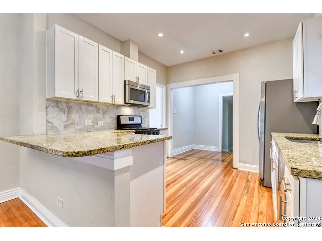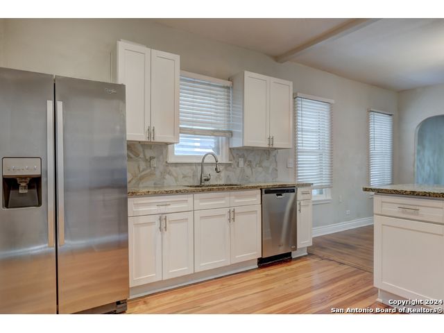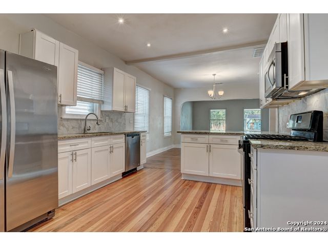 Beautiful and recently updated 3 bedroom 2 bath home in the historic section of Woodlawn Terrace! Fresh paint, redone original wood floors, high ceilings, and great open floorplan! Kitchen has granite counters, arabesque tile backsplash, updated white cabinets, gas cooking, and plenty of counter space! Both bathrooms have been updated with subway tile surrounds and beautiful accent tiles for an elegant and upscale look! Updated sinks, light fixtures, mirrors, and more! Lots of great natural light and high ceilings. Fantastic long driveway for plenty of parking or for a welcoming patio! Some new electrical work being done including a new meter. Great square footage for the price!