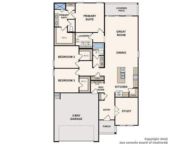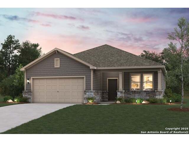 The Bowie at Cinco Lakes harmonizes style and function in a one-story design. The entrance foyer opens to a spacious open-concept great room, incorporating a dining area, living space, and a well-appointed kitchen with an island and corner pantry. This central hub extends to a covered patio for seamless indoor-outdoor living. Adjacent to the living area, a convenient laundry room and a dedicated mud room enhance the home's practicality, while a study at the front of the home offers flexibility. Two centrall